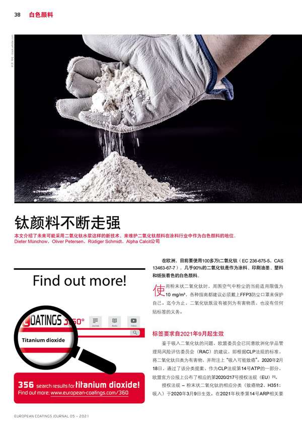 摘要:本文介紹了未來可能采用二氧化鈦水漿這樣的新技術(shù),來維護(hù)二氧化鈦顏料在涂料行業(yè)中作為白色顏料的地位。