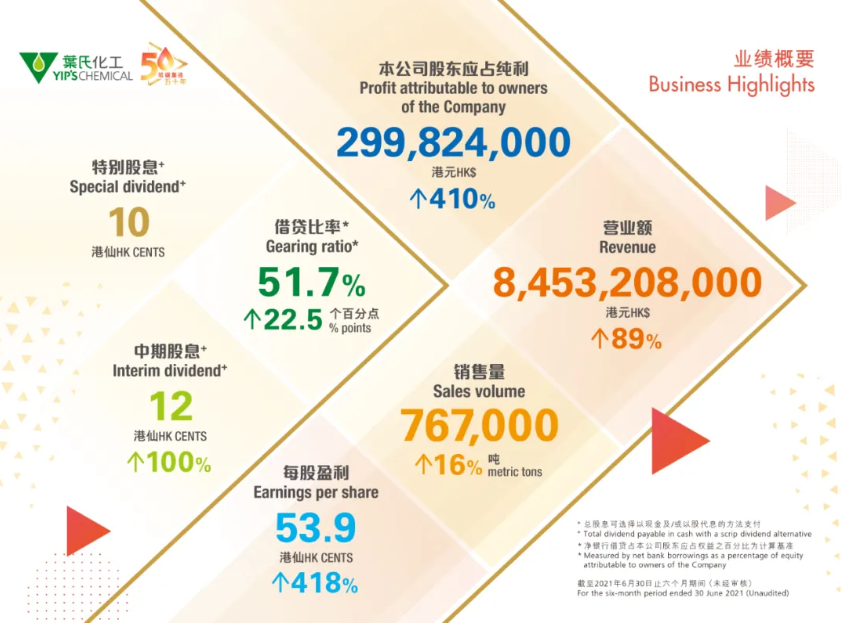 葉氏化工集團2021中期業績概要如下