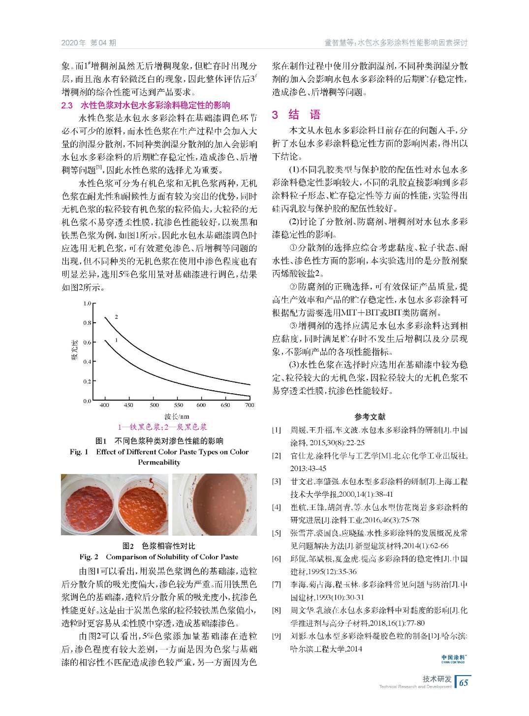 簡述了水包水多彩涂料的發展概況,指出了目前存在的問題。重點闡述了水包水多彩涂料穩定性影響因素,討論了乳膠類型與保護膠配伍性、水性色漿及助劑對水包水多彩涂料性能的影響。