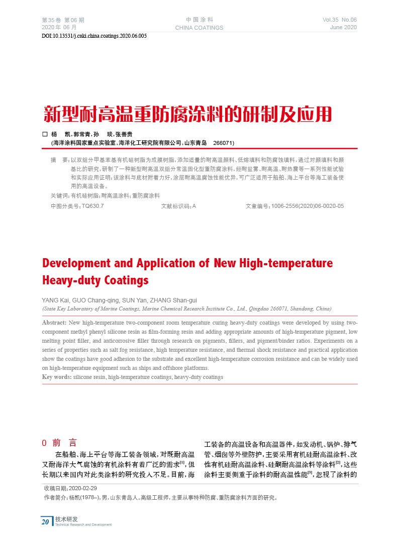 新型耐高溫重防腐涂料的研制及應用