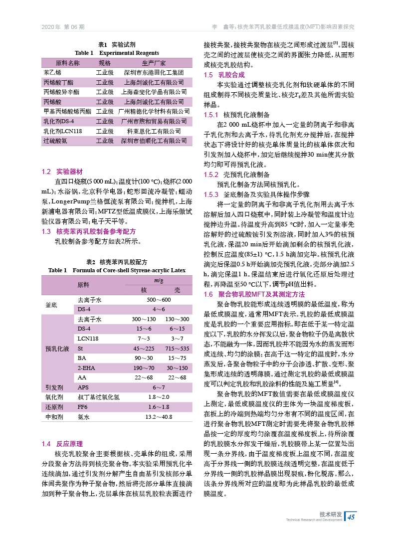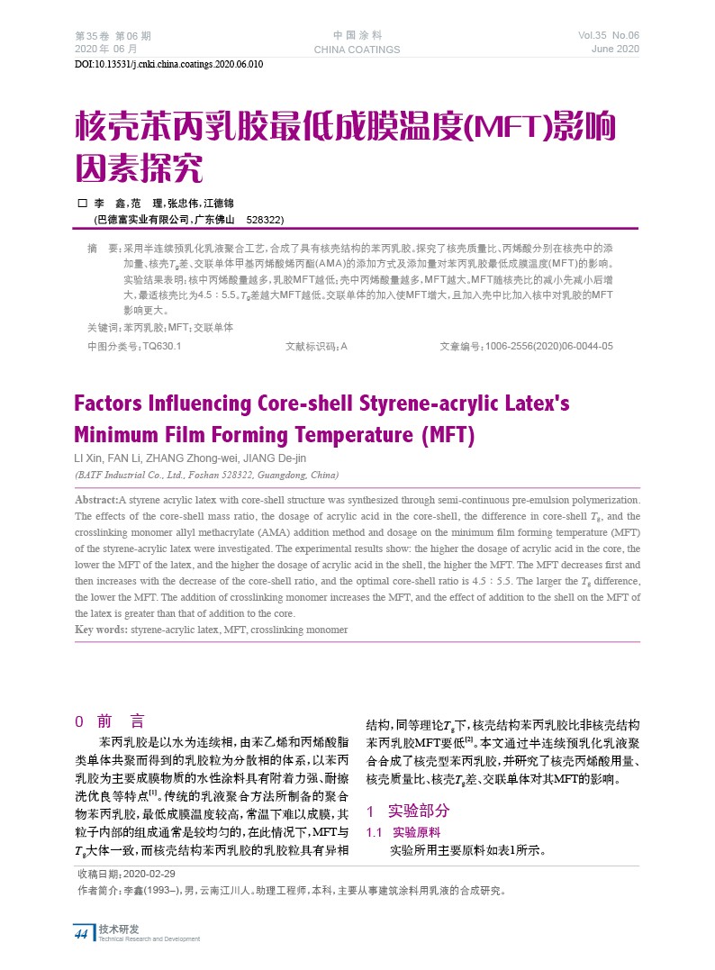 核殼苯丙乳膠最低成膜溫度(MFT)影響因素探究