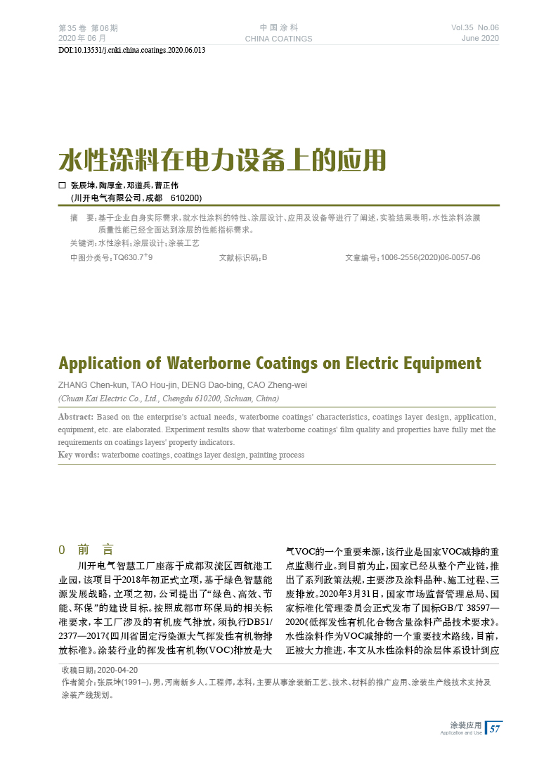 本文系作者@張辰坤,陶厚金,鄧道兵,曹正偉 授權(quán)中國(guó)涂料網(wǎng)發(fā)表,并經(jīng)中國(guó)涂料網(wǎng)編輯,未經(jīng)允許不得轉(zhuǎn)載,如需轉(zhuǎn)載請(qǐng)聯(lián)系chinacoatingnet@vip.163.com