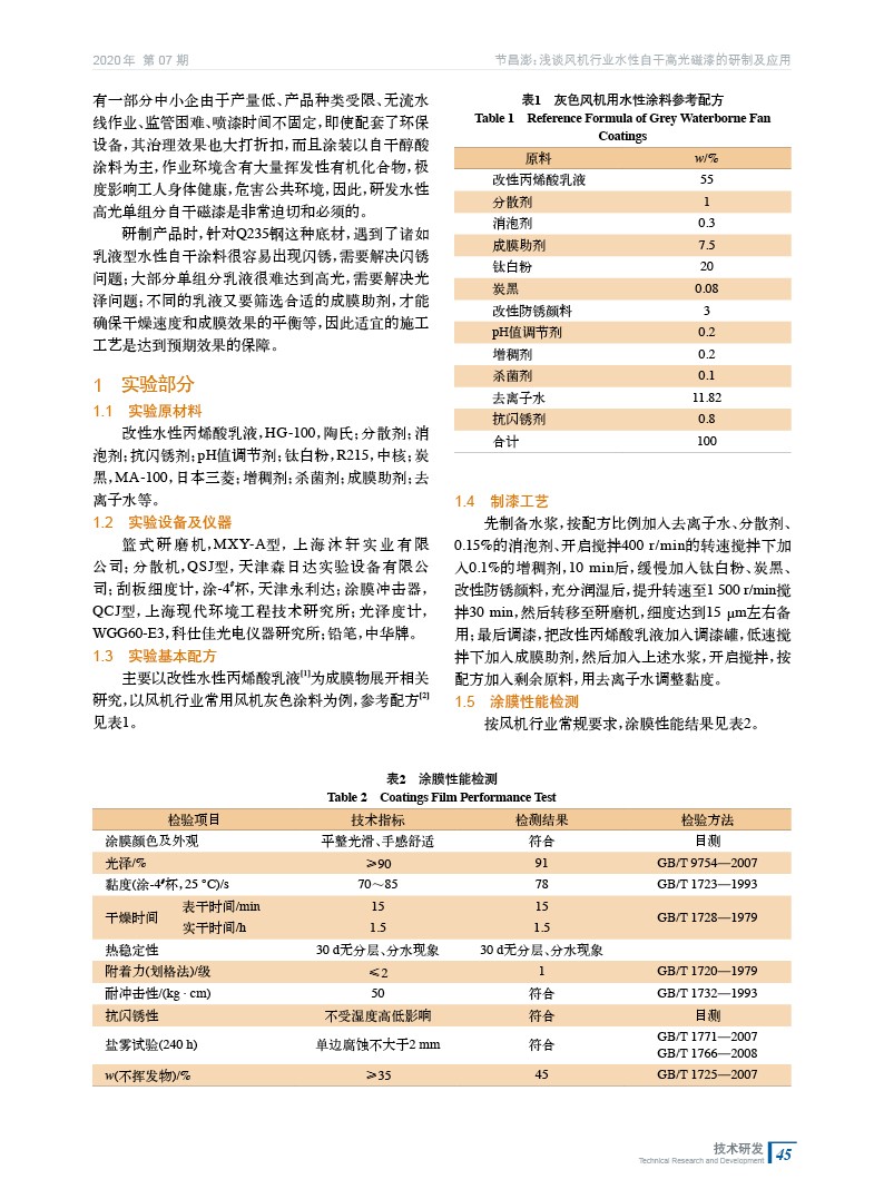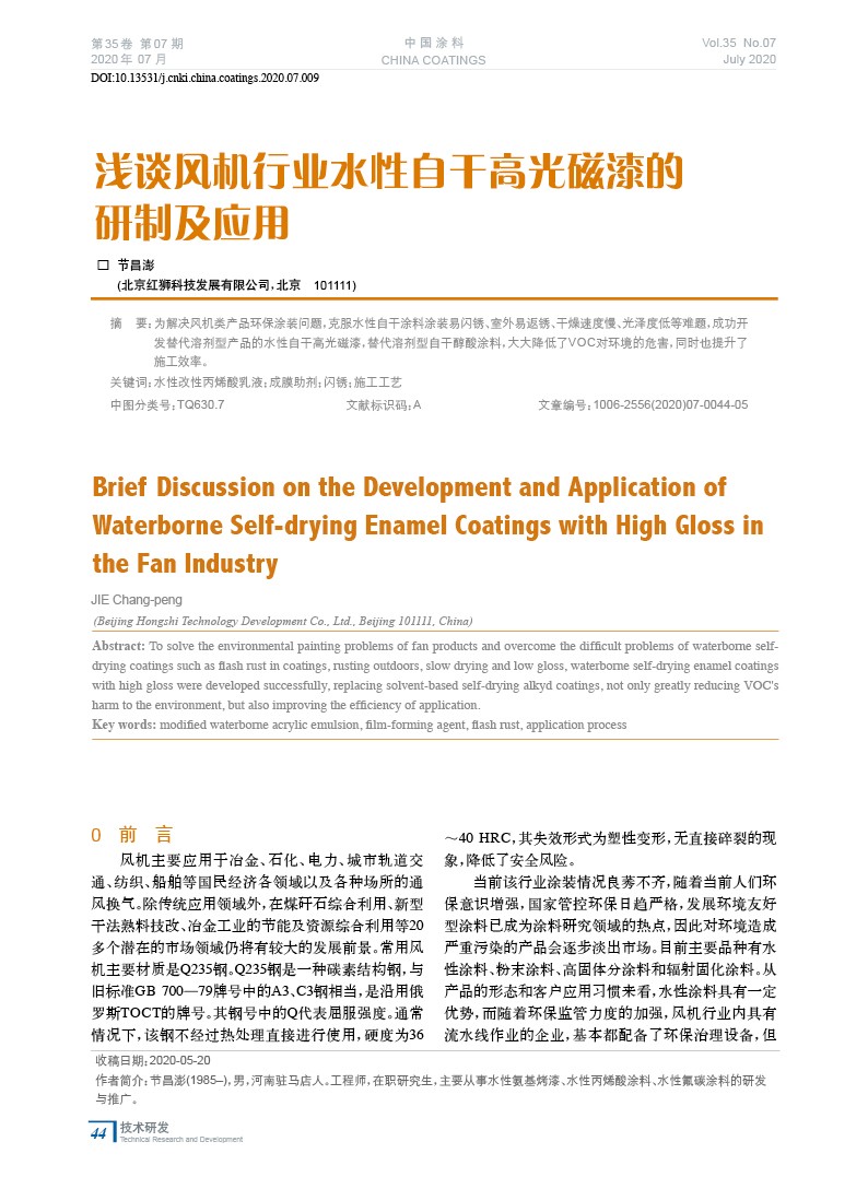 淺談風機行業水性自干高光磁漆的研制及應用