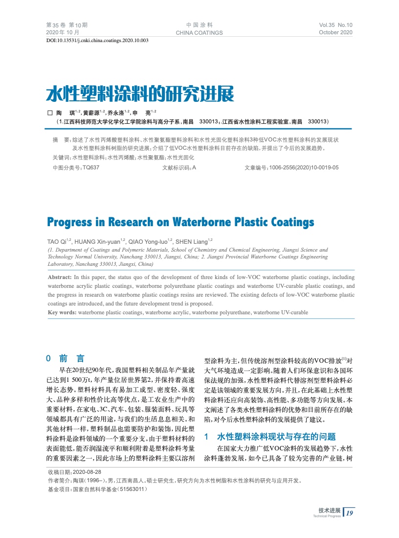 本文系作者@陶 琪,黃薪源,喬永洛,申 亮 授權中國涂料網發表,并經中國涂料網編輯,未經允許不得轉載,如需轉載請聯系chinacoatingnet@vip.163.com