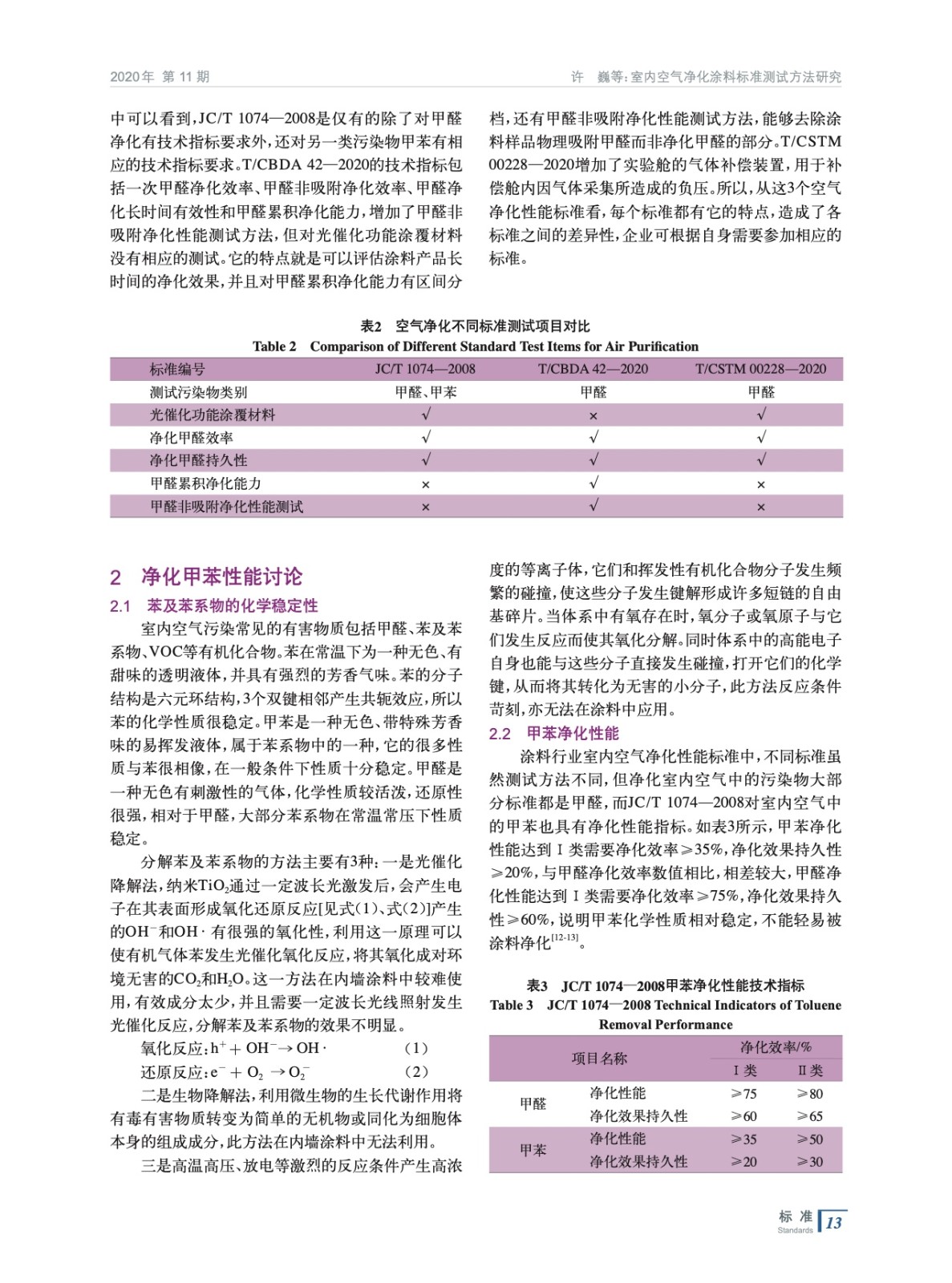 摘要:從實(shí)驗(yàn)設(shè)備、實(shí)驗(yàn)方法和測(cè)試項(xiàng)目上對(duì)比了室內(nèi)空氣凈化涂料的不同空氣凈化性能標(biāo)準(zhǔn),結(jié)果表明,是不同空氣凈化性能標(biāo)準(zhǔn)之間有較大差異,測(cè)試數(shù)據(jù)對(duì)比無(wú)法對(duì)產(chǎn)品設(shè)計(jì)提供有效依據(jù)。根據(jù)涂料空氣凈化性能標(biāo)準(zhǔn)測(cè)試方法現(xiàn)狀,探討了苯及苯系物凈化性能的問(wèn)題,并對(duì)現(xiàn)行標(biāo)準(zhǔn)測(cè)試方法的優(yōu)缺點(diǎn)進(jìn)行比較,提出標(biāo)準(zhǔn)測(cè)試方法的不足,為建立更可靠的空氣凈化涂料標(biāo)準(zhǔn)提供支撐。