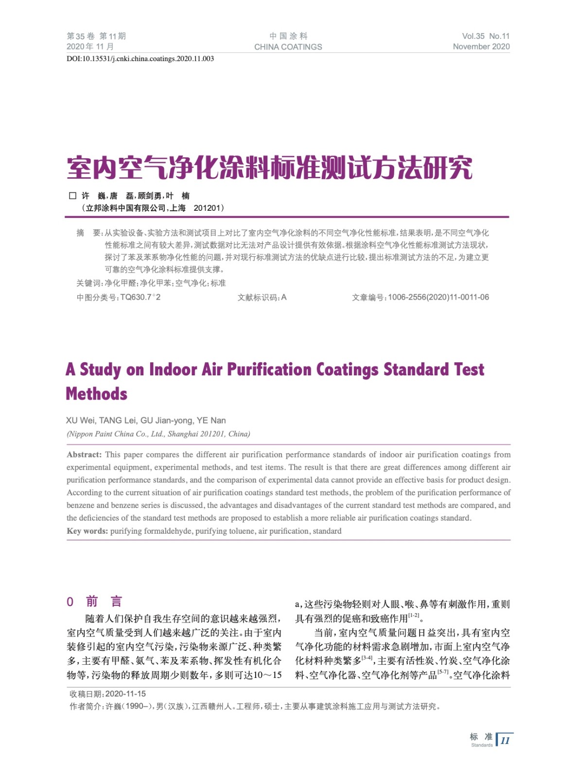 室內(nèi)空氣凈化涂料標(biāo)準(zhǔn)測(cè)試方法研究