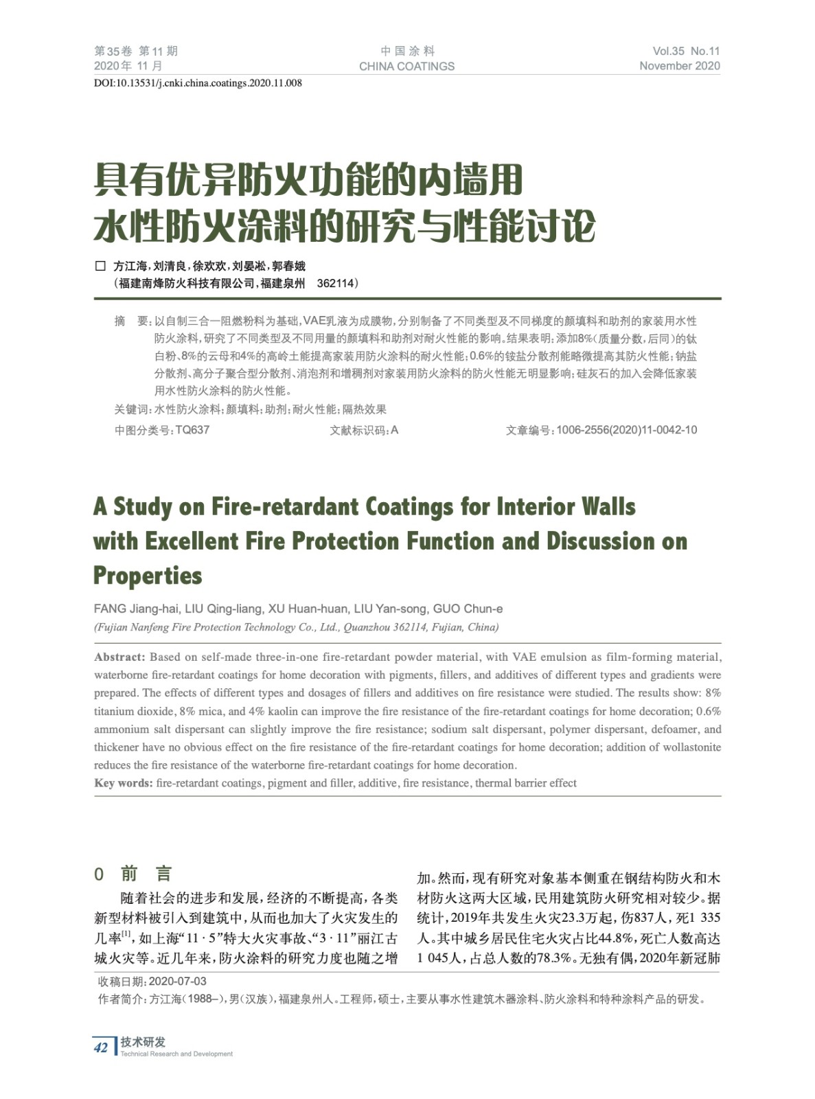 本文系作者@方江海,劉清良,徐歡歡,劉晏凇,郭春娥 授權(quán)中國涂料網(wǎng)發(fā)表,并經(jīng)中國涂料網(wǎng)編輯,未經(jīng)允許不得轉(zhuǎn)載,如需轉(zhuǎn)載請聯(lián)系chinacoatingnet@vip.163.com