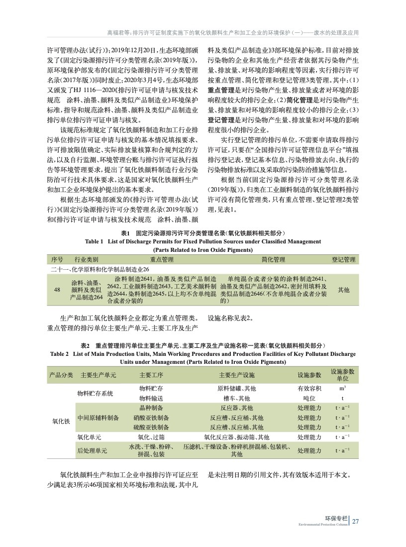 排污許可證制度實施下的氧化鐵顏料生產和加工企業的環境保護(一)——廢水的處理及應用