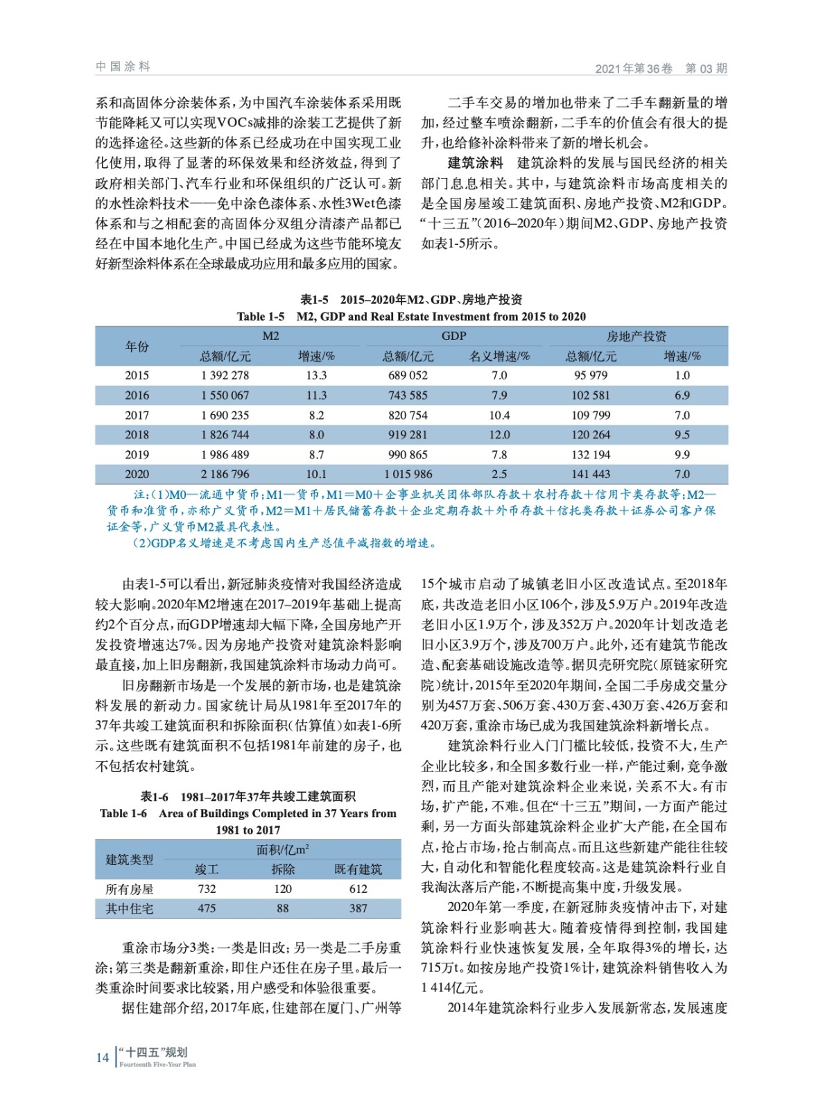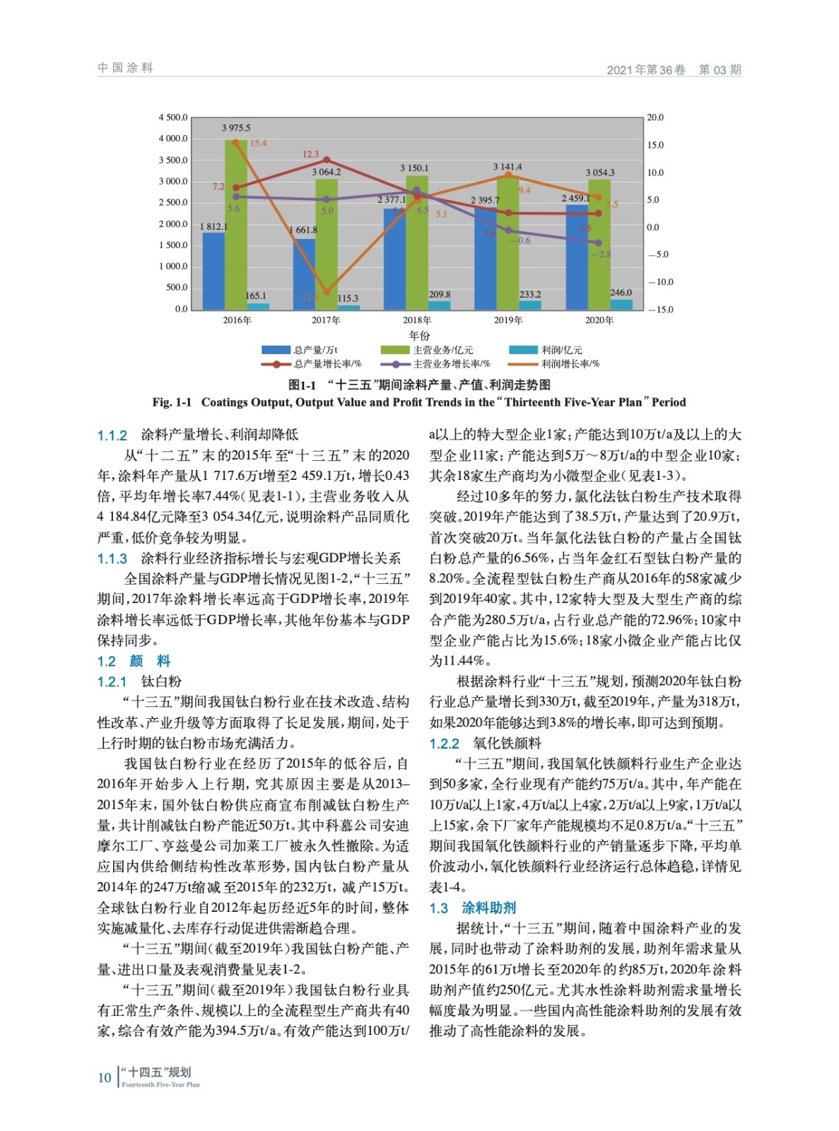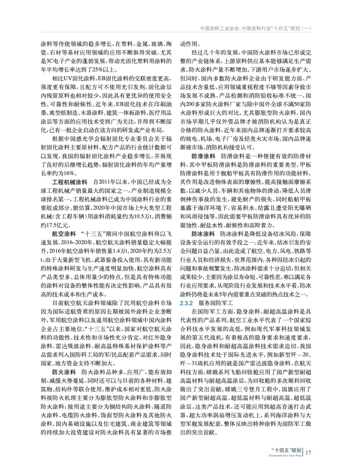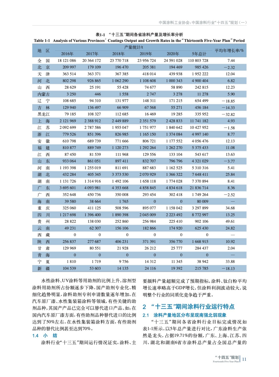 摘要:編者按:2021年3月24日,《中國涂料行業(yè)“十四五”規(guī)劃》于“2021中國國際涂料大會”期間正式發(fā)布,為中國涂料行業(yè)未來5年的發(fā)展擘畫了目標和方向。為了使涂料行業(yè)及相關領域及時深入了解《中國涂料行業(yè)“十四五”規(guī)劃》的精髓和全貌,本刊將從本期開始全文刊登,并分別解讀重點領域的“十四五”發(fā)展規(guī)劃,以饗讀者。