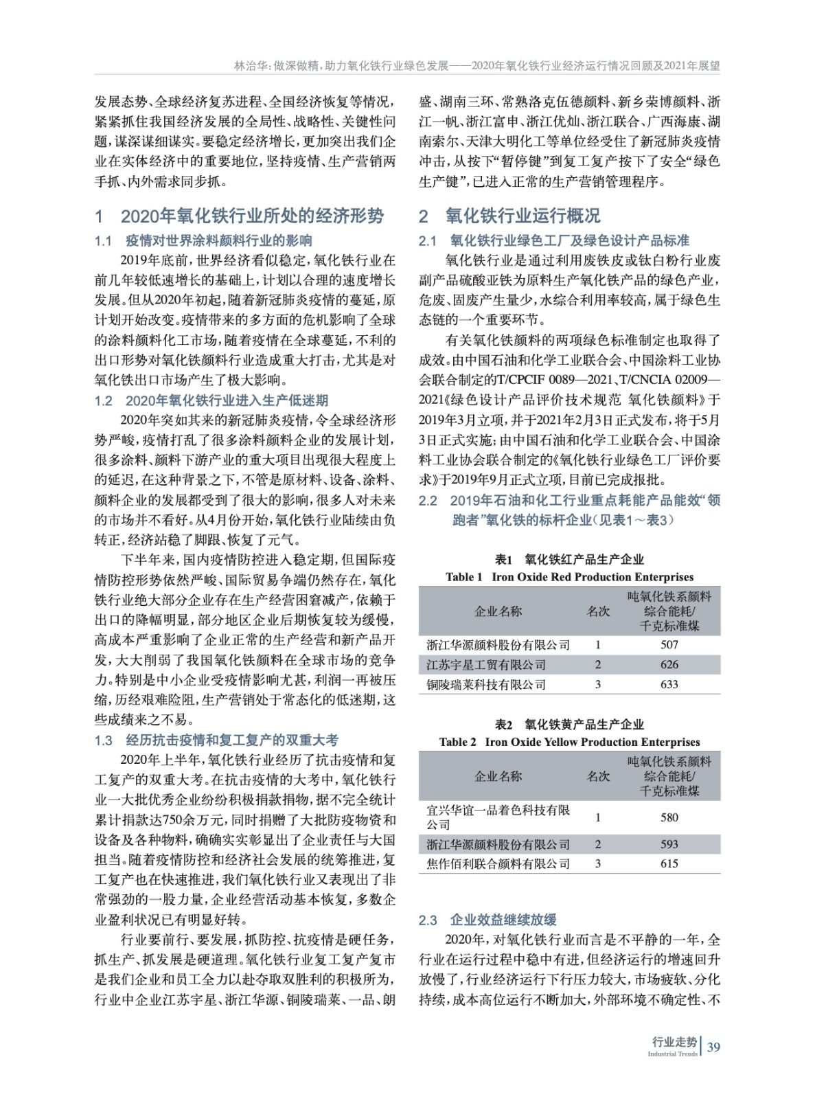 做深做精,助力氧化鐵行業綠色發展——2020年氧化鐵行業經濟運行情況回顧及2021年展望
