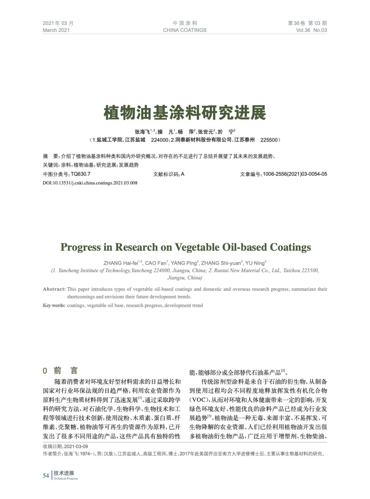 介紹了植物油基涂料種類和國內外研究概況,對存在的不足進行了總結并展望了其未來的發展趨勢。