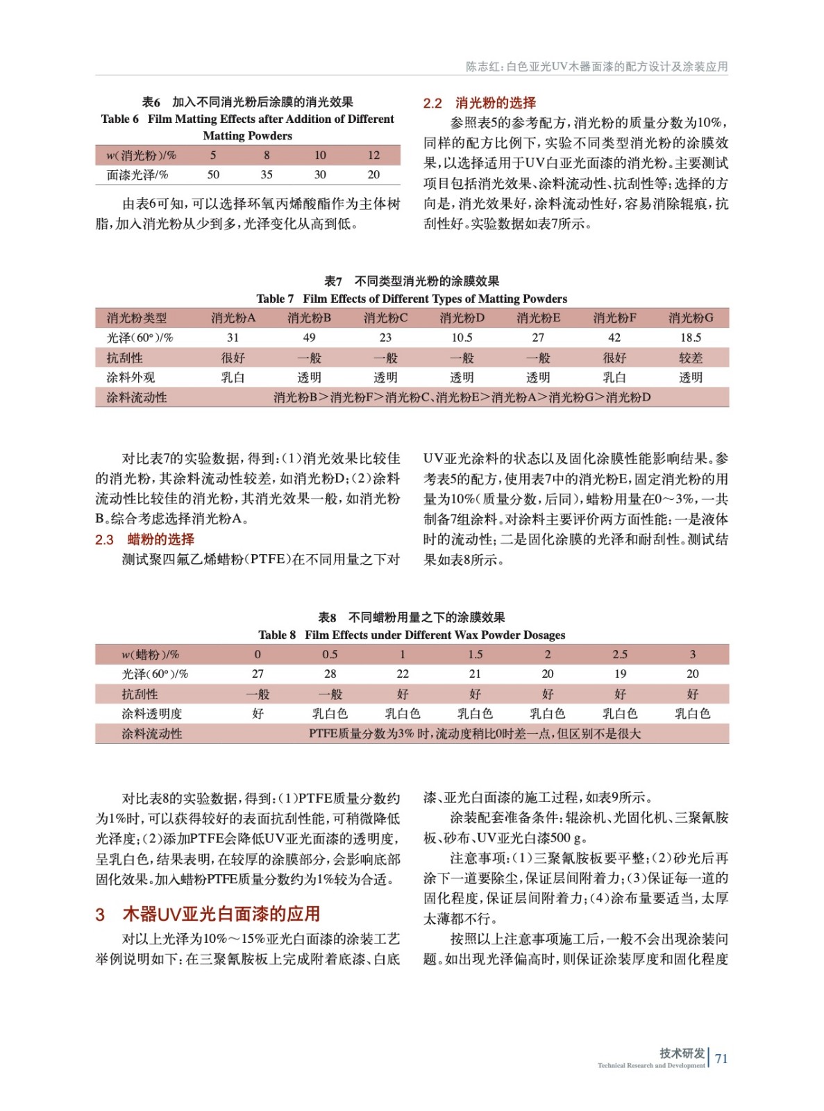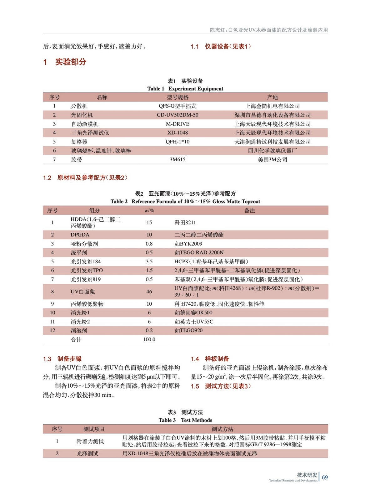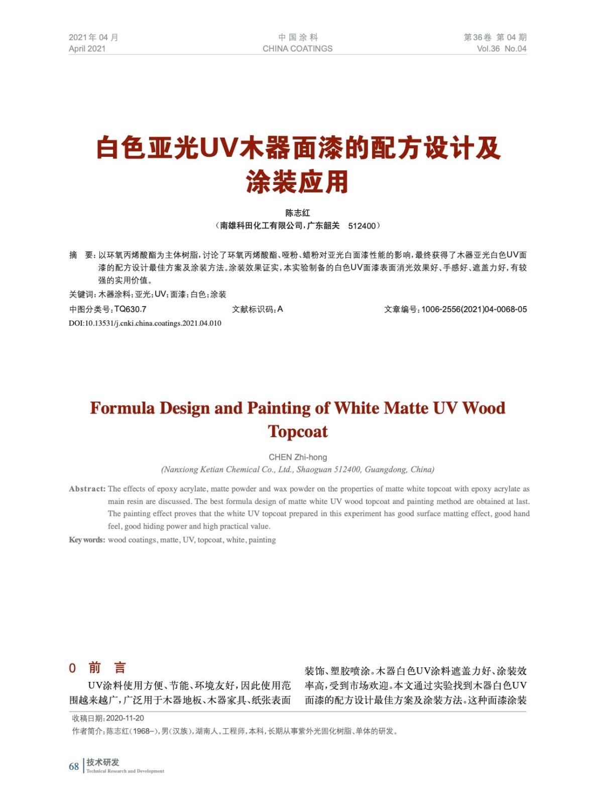 木器亞光白色UV面漆的配方設(shè)計(jì)及涂裝應(yīng)用