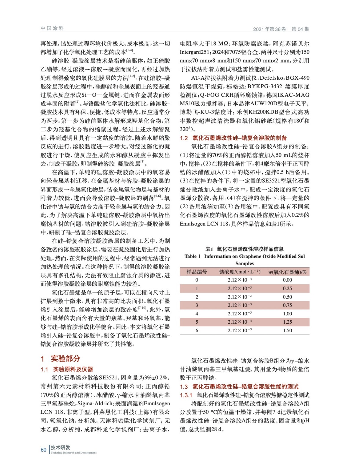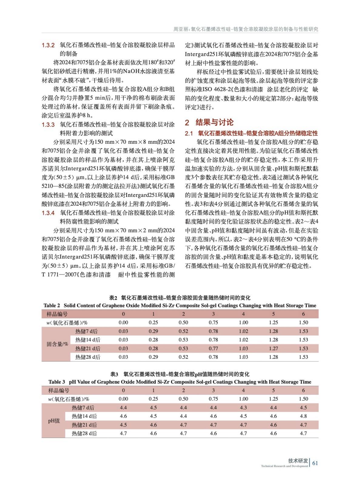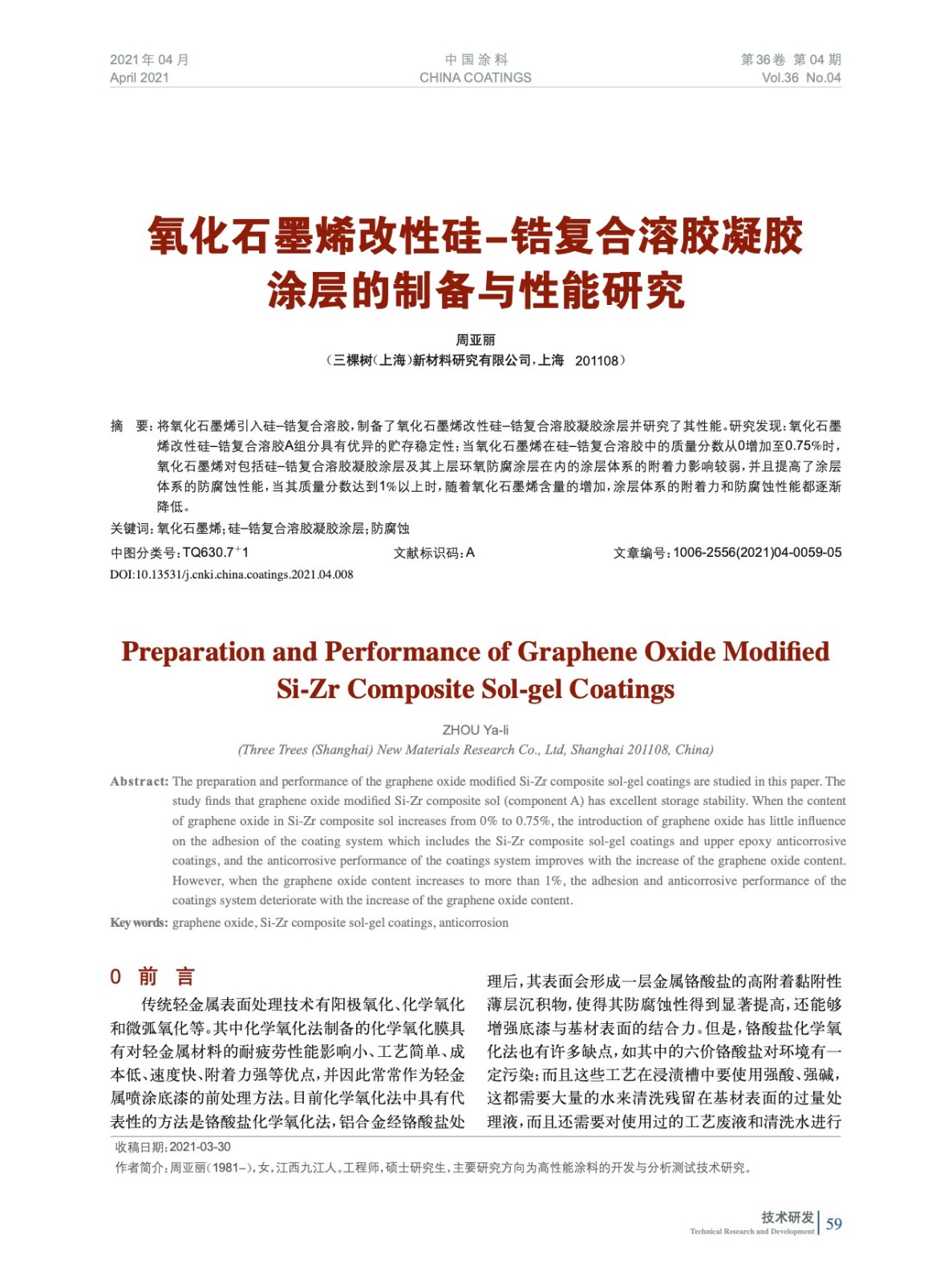 氧化石墨烯改性硅-鋯復合溶膠凝膠涂層的制備與性能研究