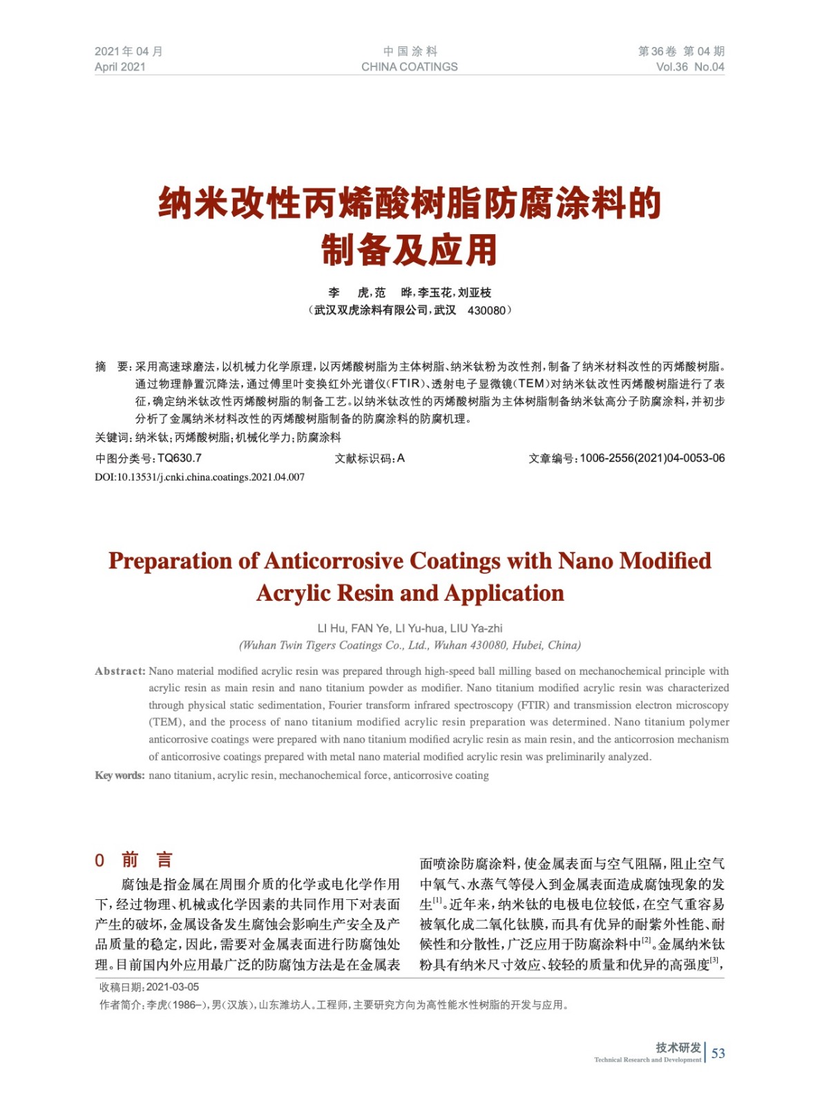 本文系作者@李 虎,范 曄,李玉花,劉亞枝 授權中國涂料網發表,并經中國涂料網編輯,未經允許不得轉載,如需轉載請聯系chinacoatingnet@vip.163.com