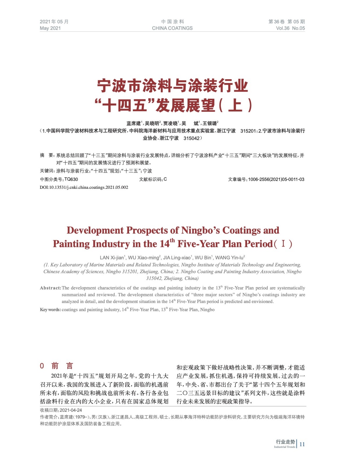 寧波市涂料與涂裝行業(yè)“十四五”發(fā)展展望(上)