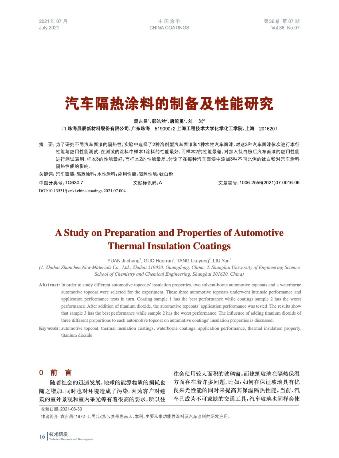 本文系作者@袁吉昌,郭皓然,唐流勇,劉 巖 授權中國涂料網發表,并經中國涂料網編輯,未經允許不得轉載,如需轉載請聯系chinacoatingnet@vip.163.com