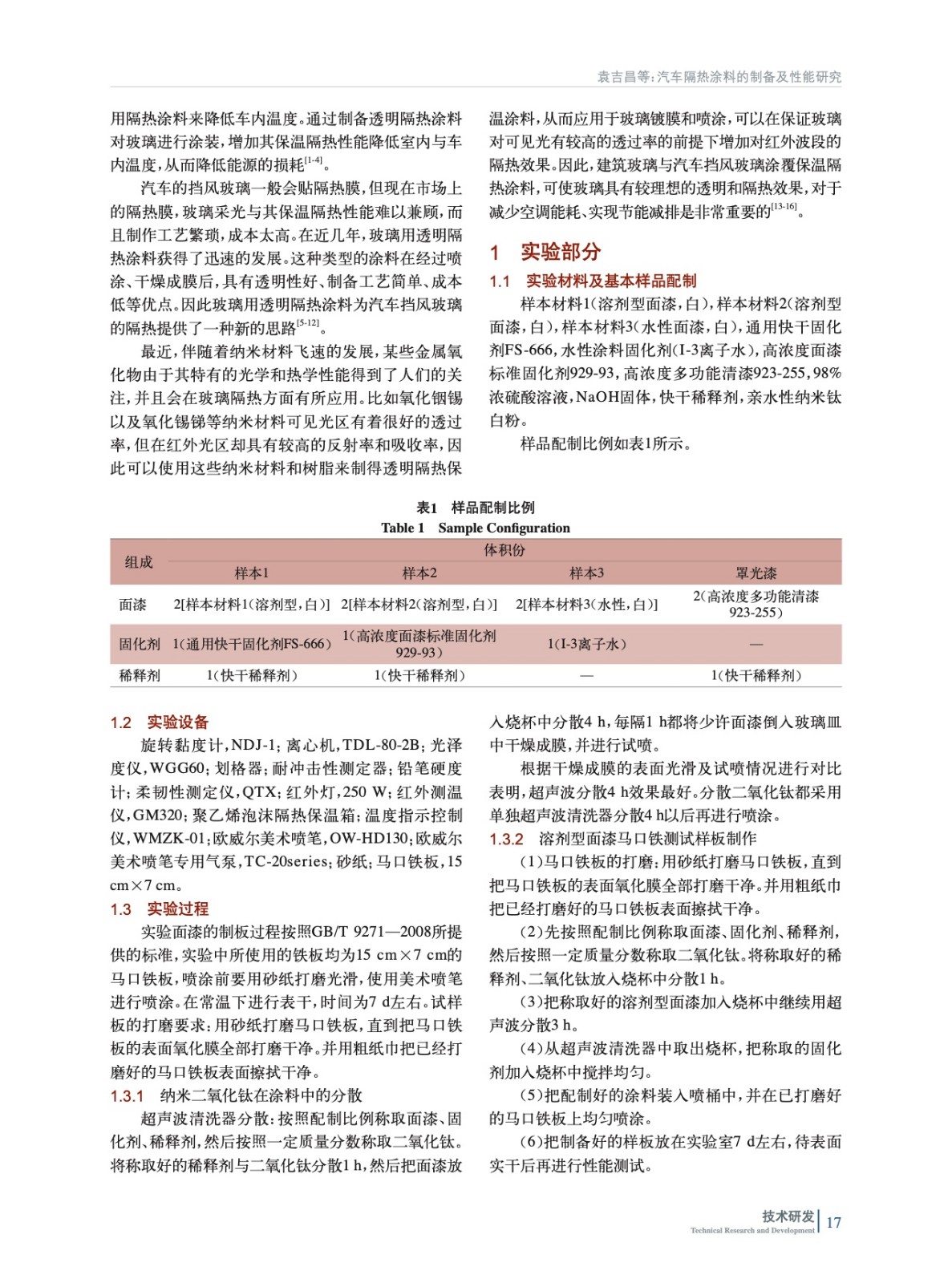 汽車隔熱涂料的制備及性能研究