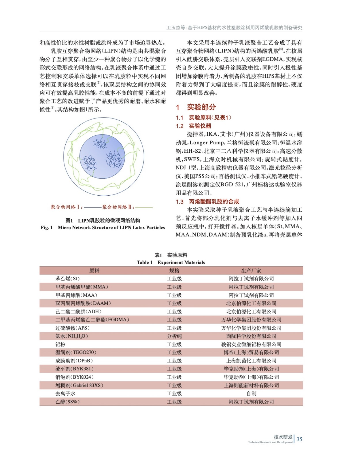 基于HIPS基材的水性塑膠涂料用丙烯酸乳膠的制備研究
