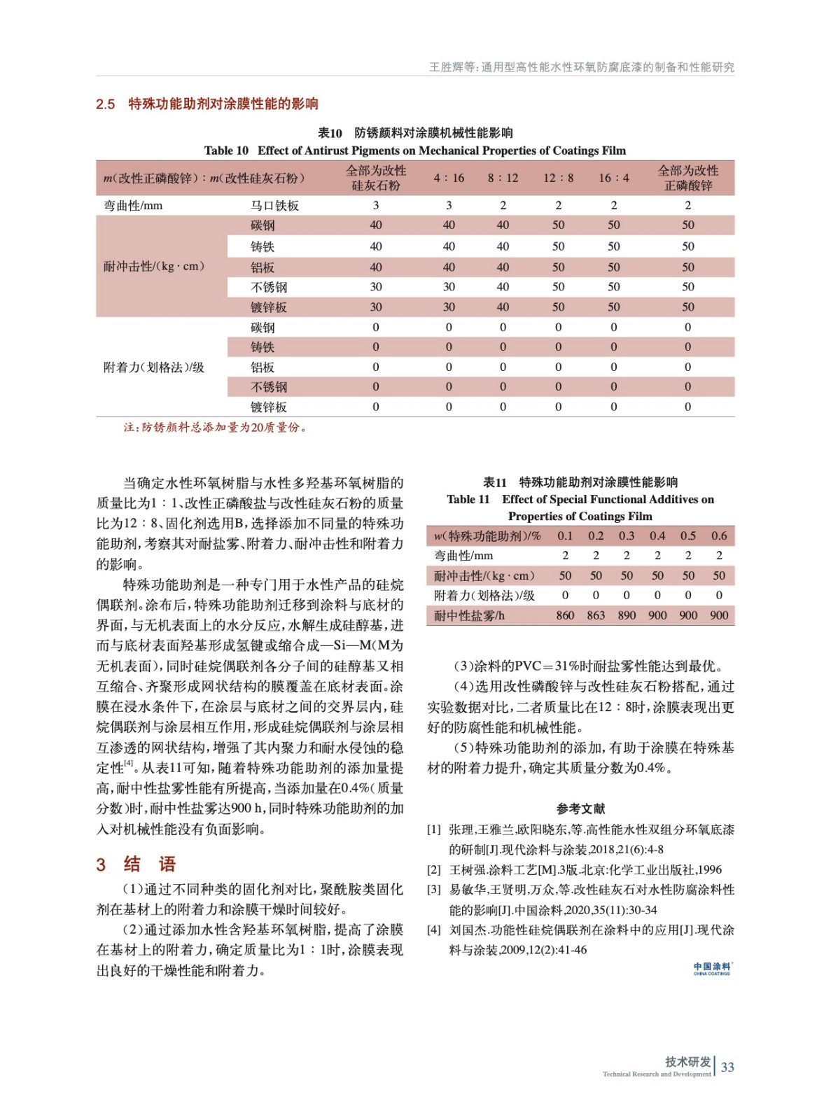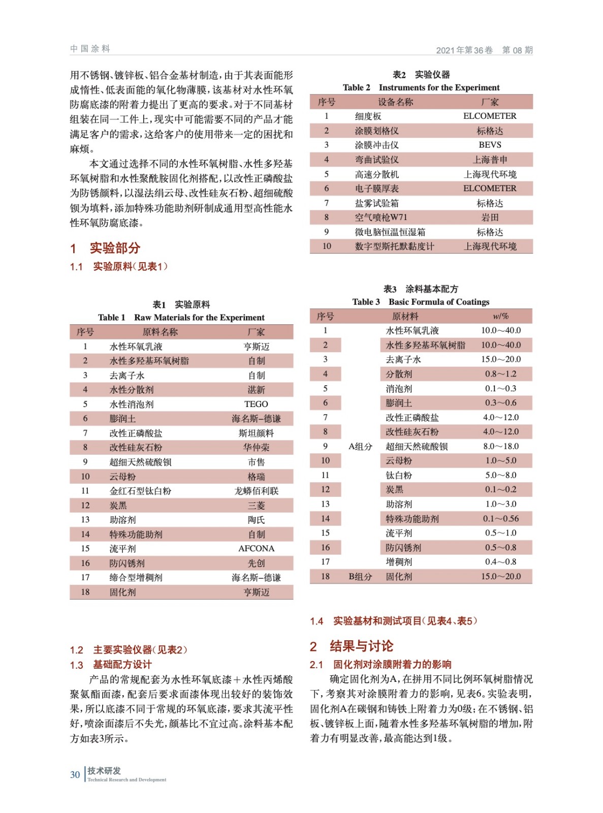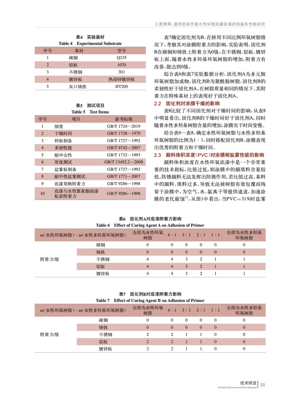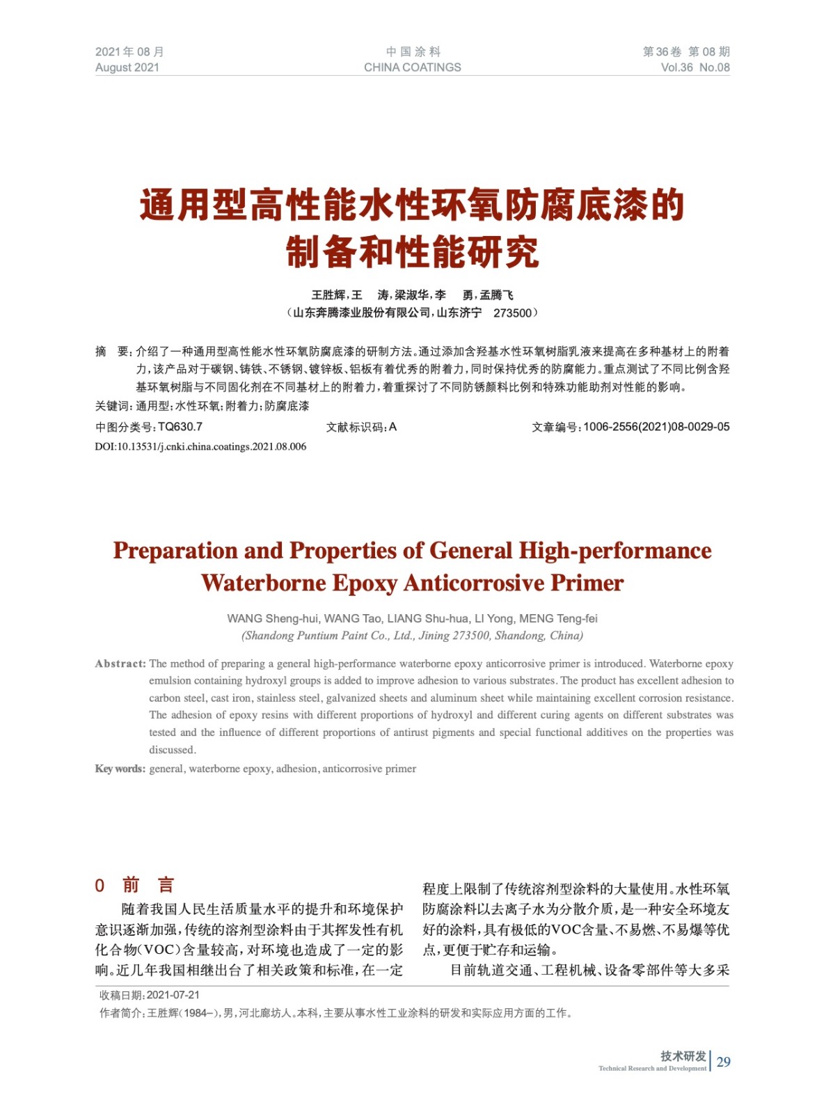 通用型高性能水性環氧防腐底漆的制備和性能研究