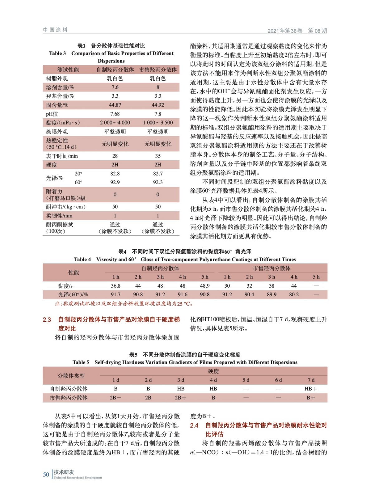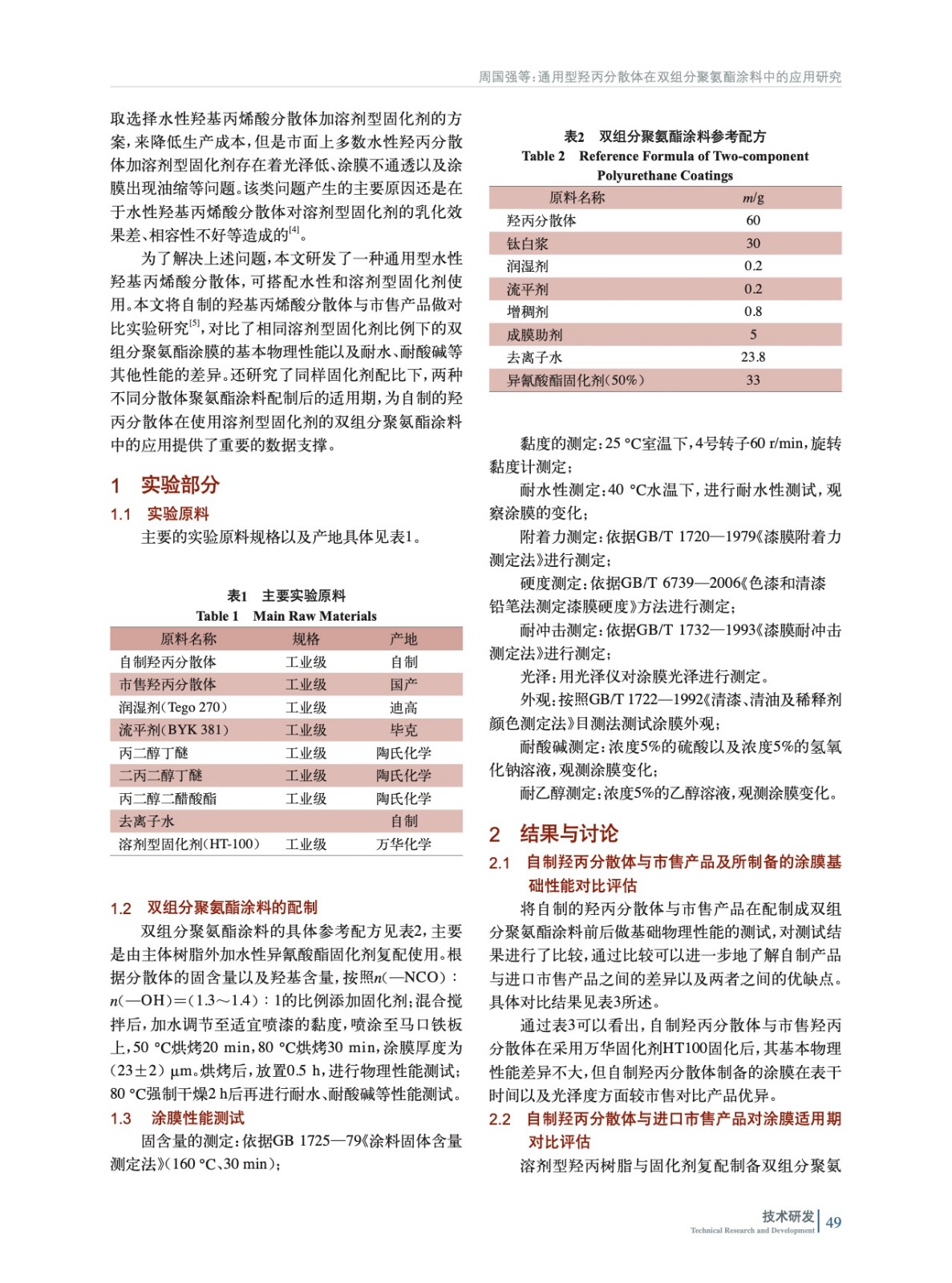 通用型羥丙分散體在雙組分聚氨酯涂料中的應用研究