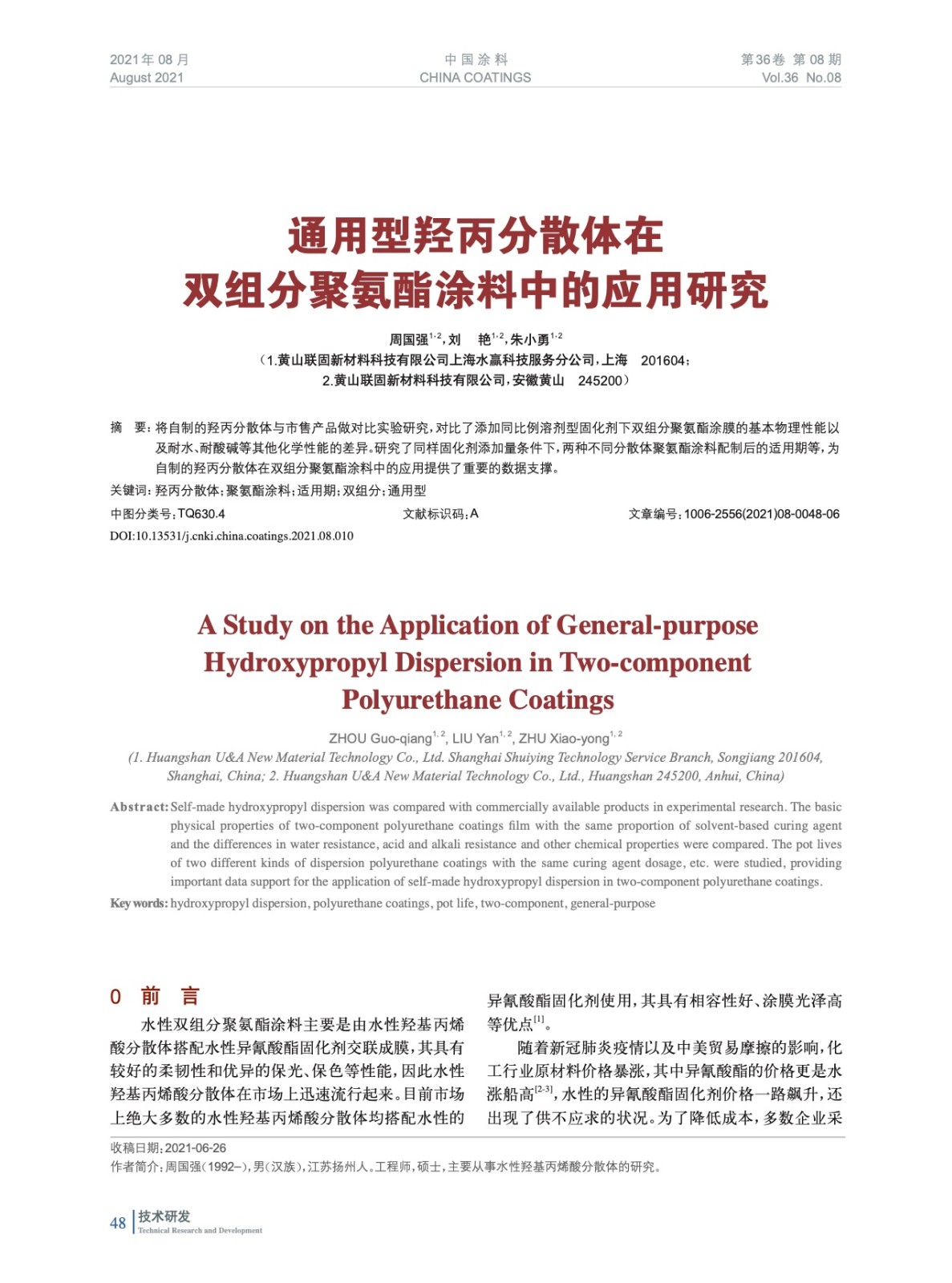 本文系作者@周國強,劉 艷,朱小勇 授權中國涂料網發表,并經中國涂料網編輯,未經允許不得轉載,如需轉載請聯系chinacoatingnet@vip.163.com
