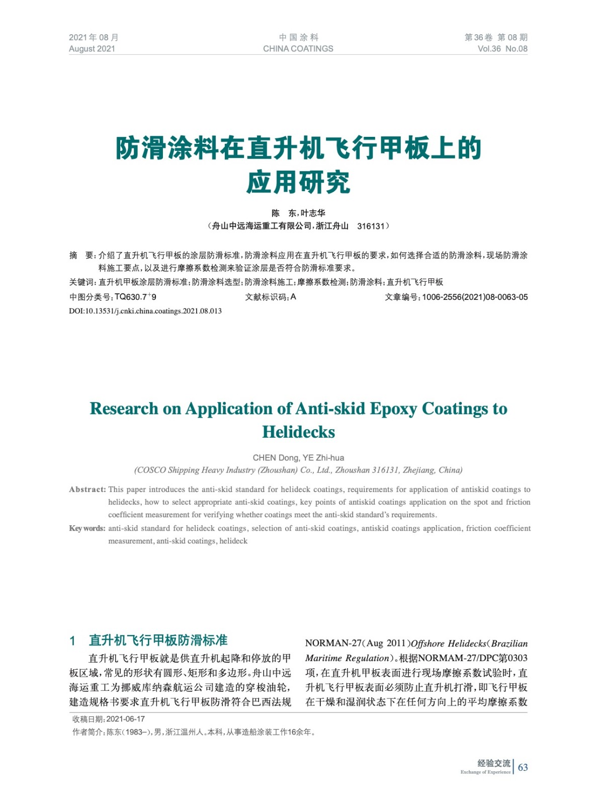 介紹了直升機飛行甲板的涂層防滑標準,防滑涂料應用在直升機飛行甲板的要求,如何選擇合適的防滑涂料,現場防滑涂料施工要點,以及進行摩擦系數檢測來驗證涂層是否符合防滑標準要求。