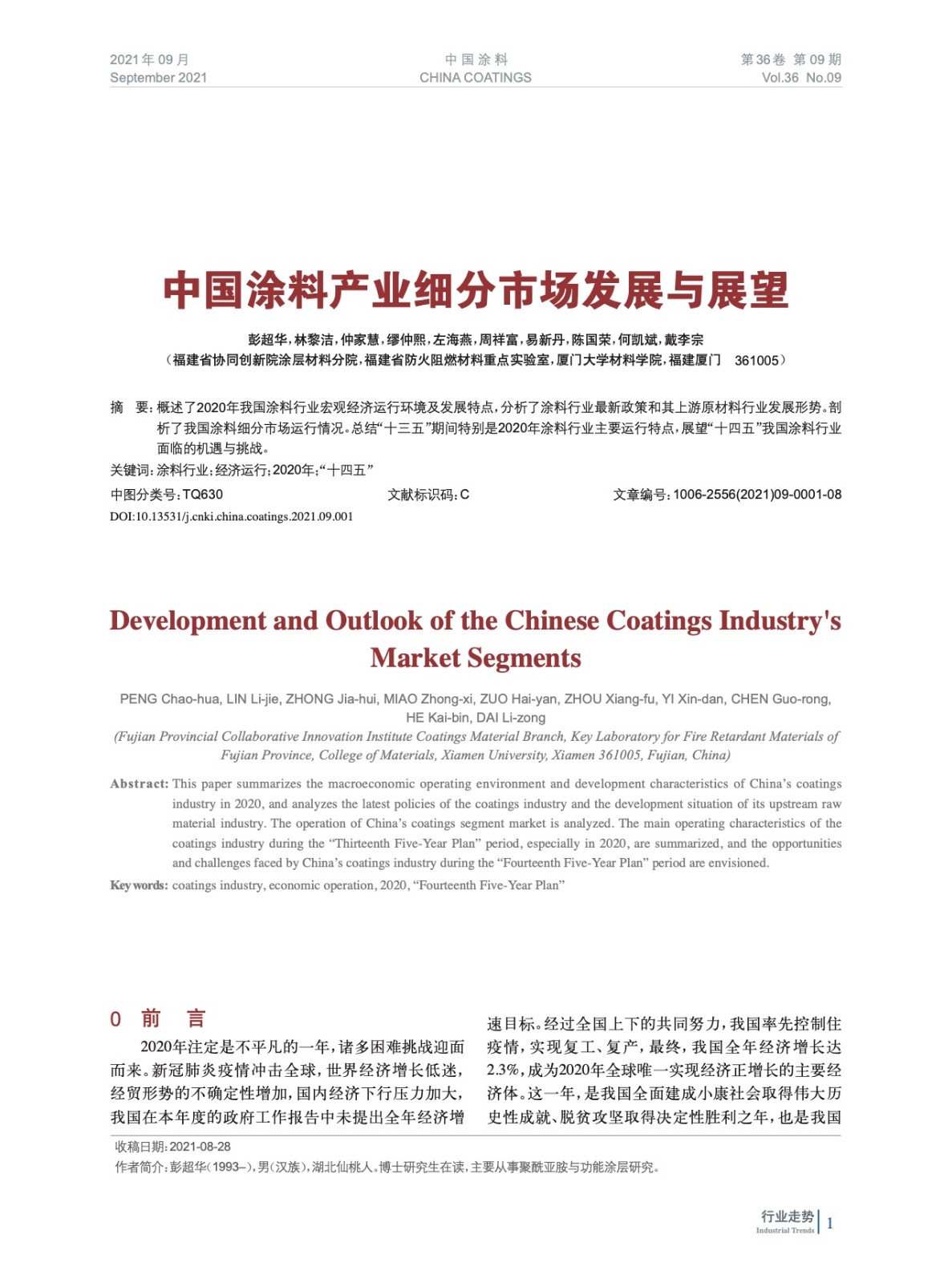 本文系作者@彭超華,林黎潔,仲家慧,繆仲熙,左海燕,周祥富,易新丹,陳國榮,何凱斌,戴李宗 授權(quán)中國涂料網(wǎng)發(fā)表,并經(jīng)中國涂料網(wǎng)編輯,未經(jīng)允許不得轉(zhuǎn)載,如需轉(zhuǎn)載請聯(lián)系chinacoatingnet@vip.163.com
