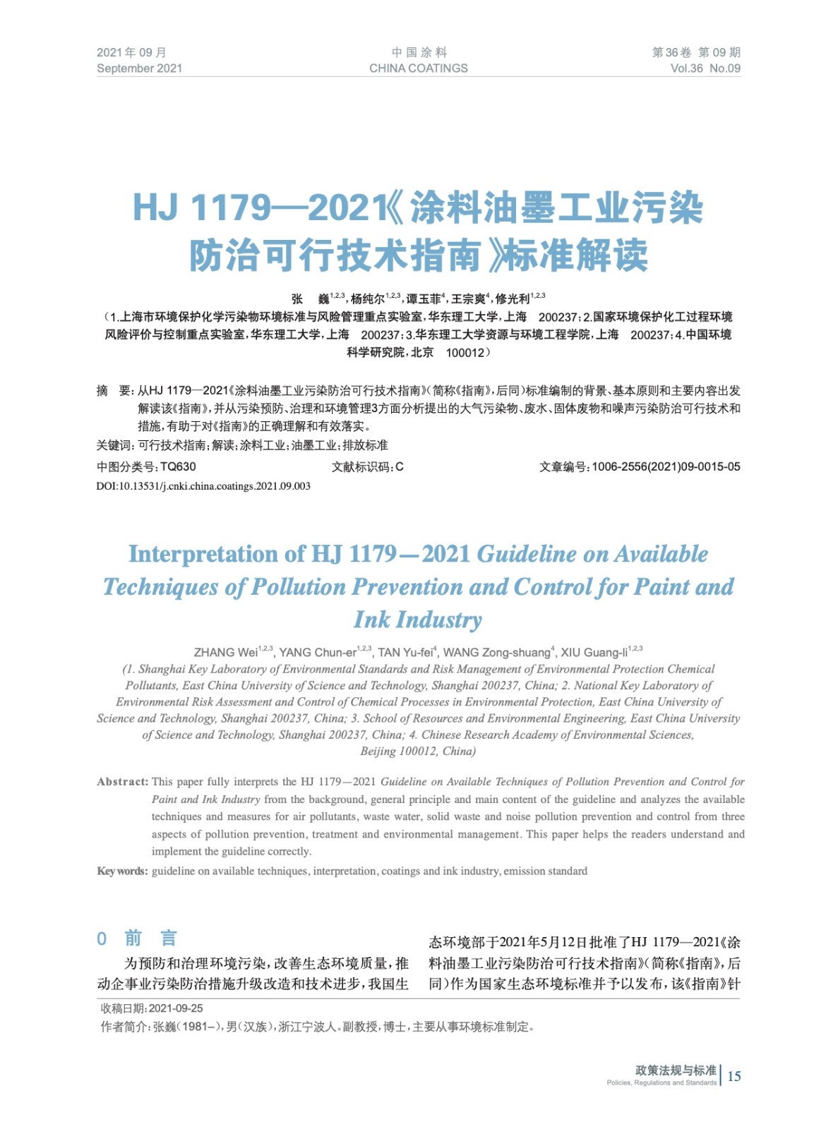 HJ 1179—2021《涂料油墨工業(yè)污染防治可行技術(shù)指南》標(biāo)準(zhǔn)解讀