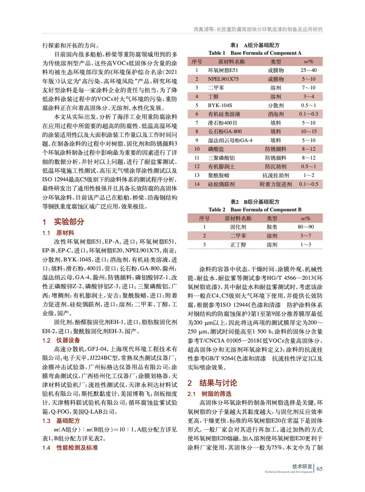長效重防腐高固體分環氧底漆的制備及應用研究