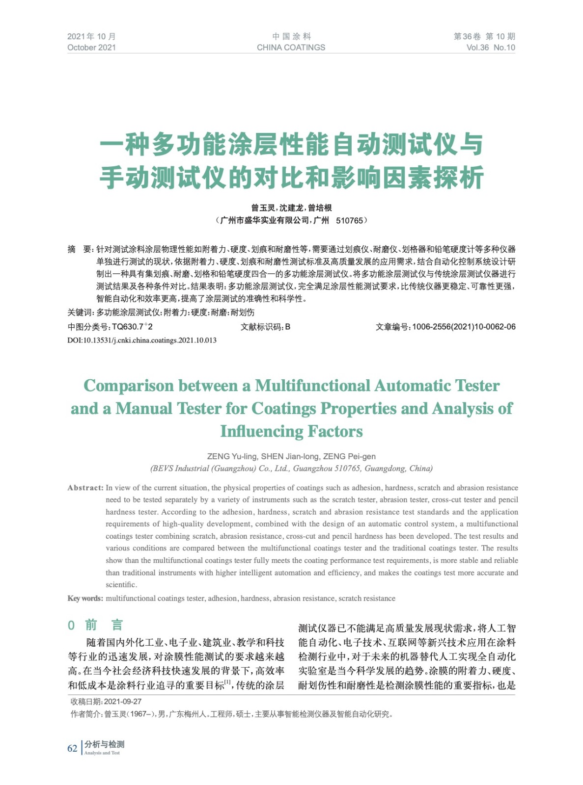 本文系作者@曾玉靈,沈建龍,曾培根 授權中國涂料網發表,并經中國涂料網編輯,未經允許不得轉載,如需轉載請聯系chinacoatingnet@vip.163.com