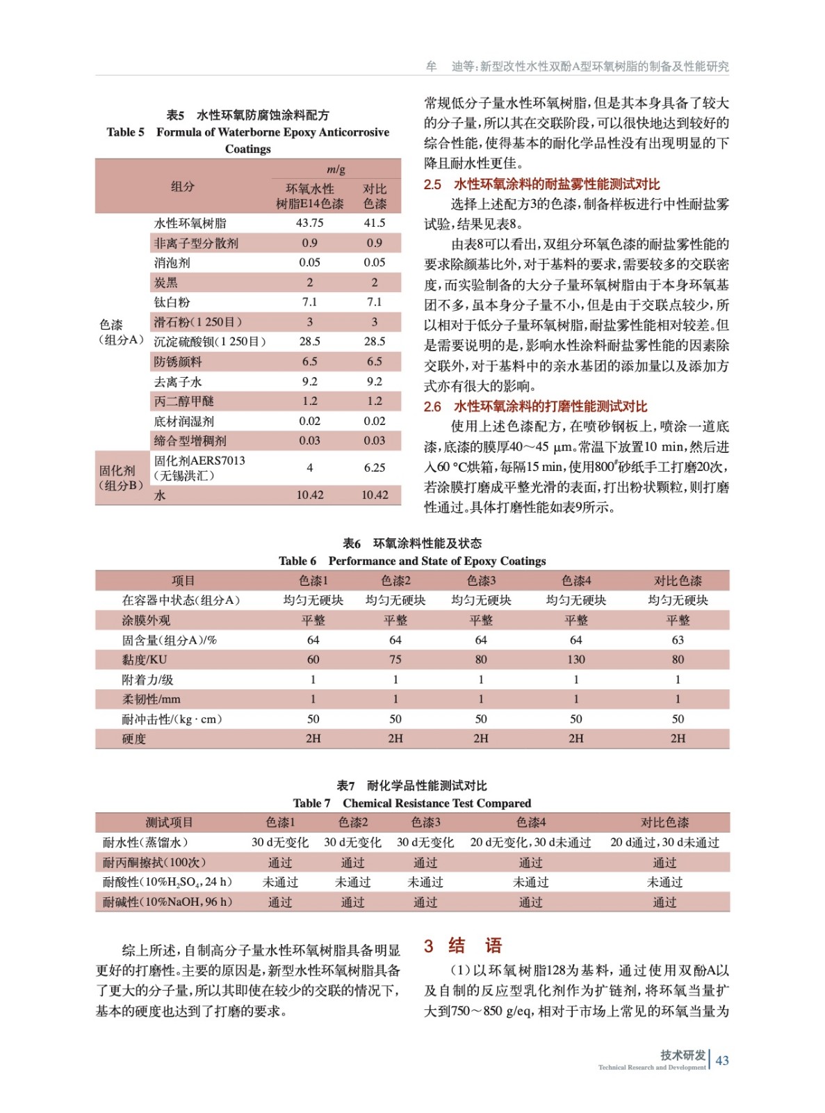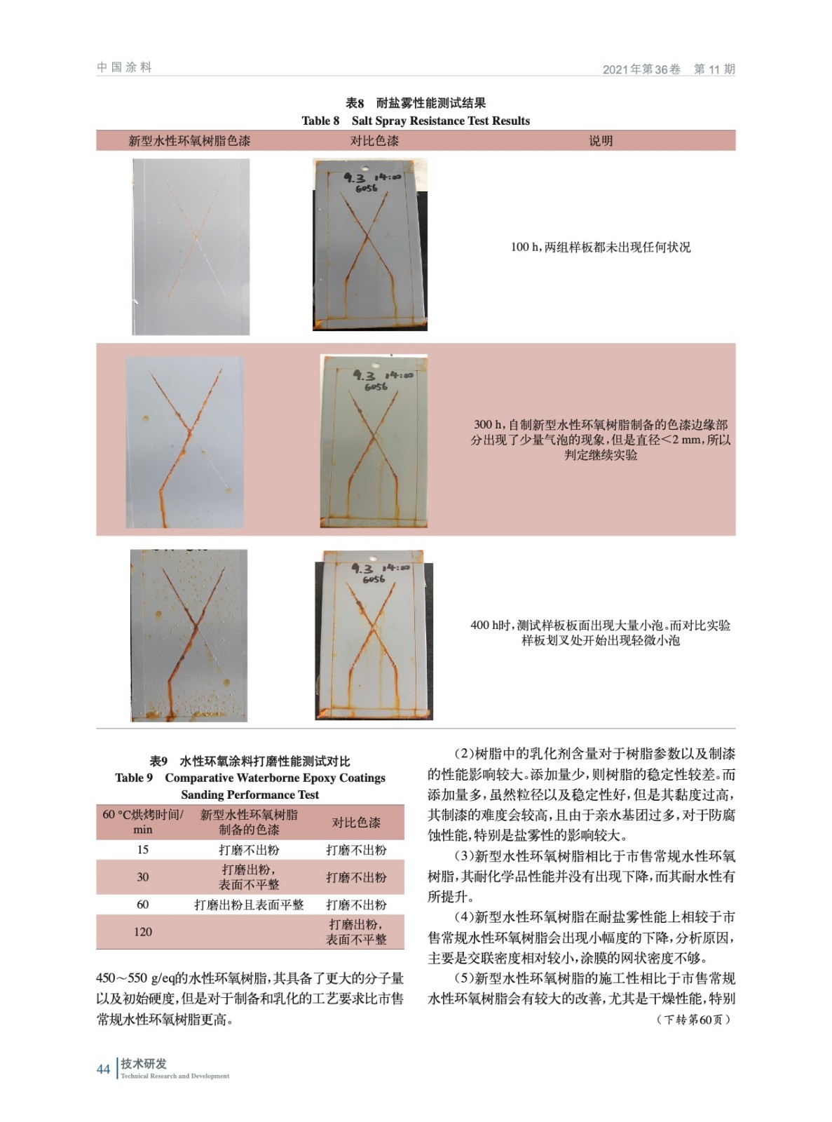 摘要:以自制反應(yīng)型表面活性劑為親水基團(tuán),加入低分子量環(huán)氧樹(shù)脂等,制備環(huán)氧當(dāng)量800 g/eq左右的環(huán)氧樹(shù)脂,并在合適的溫度下進(jìn)行水性化。與市售的水性環(huán)氧樹(shù)脂進(jìn)行對(duì)比,其具備了優(yōu)異的打磨性和耐水性,干燥性能相比之下也更加得優(yōu)異,更加適合“濕碰濕”體系。且由于可添加更少的固化劑,也具備更好的性?xún)r(jià)比。