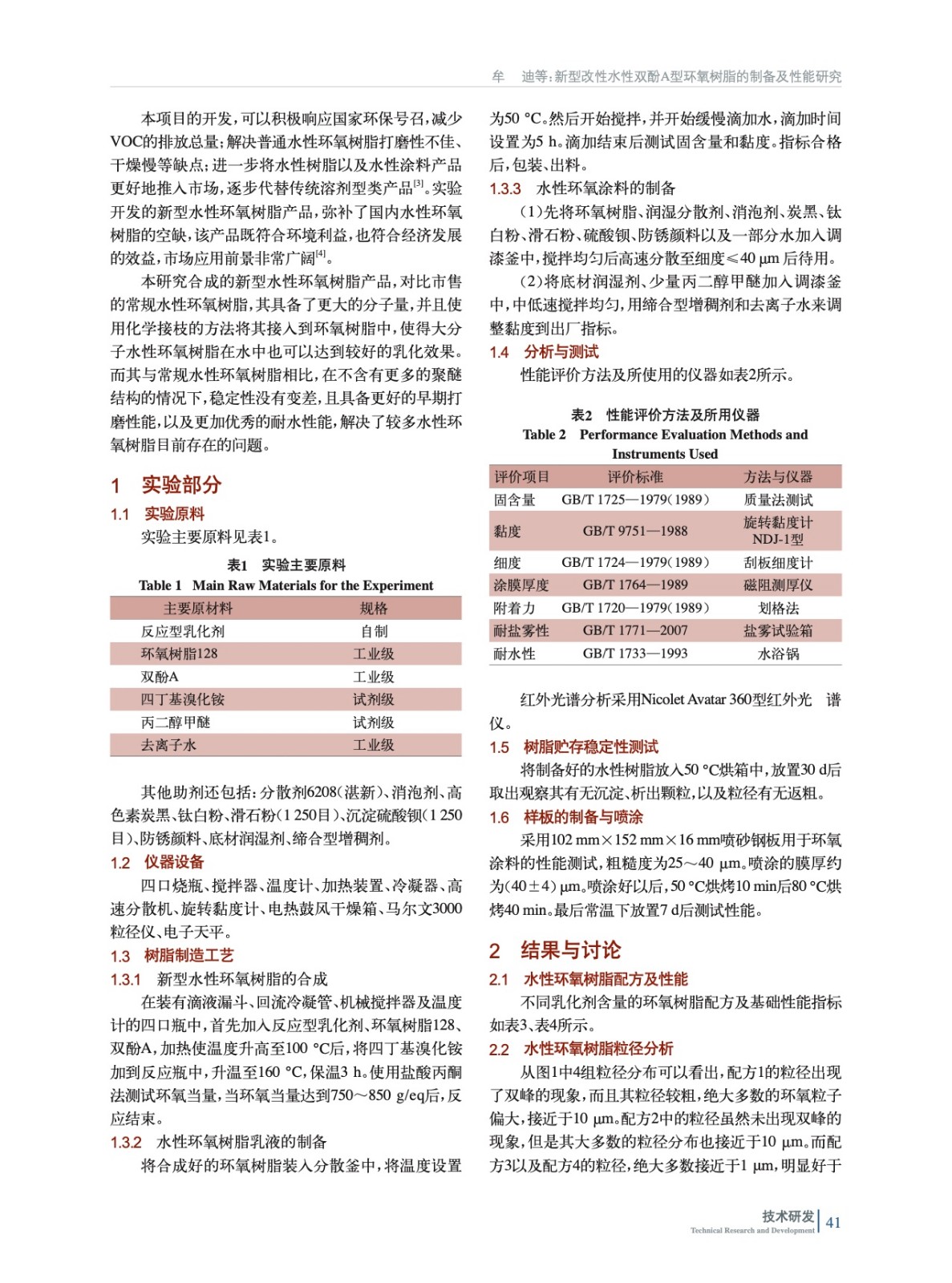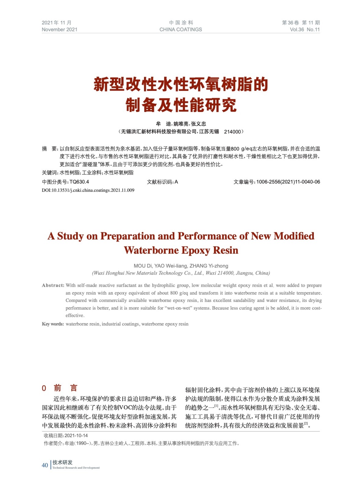 新型改性水性環(huán)氧樹(shù)脂的制備及性能研究