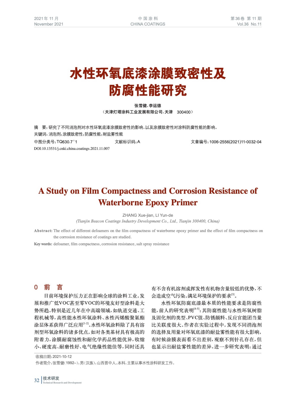 本文系作者@張雪健,李運德 授權(quán)中國涂料網(wǎng)發(fā)表,并經(jīng)中國涂料網(wǎng)編輯,未經(jīng)允許不得轉(zhuǎn)載,如需轉(zhuǎn)載請聯(lián)系chinacoatingnet@vip.163.com