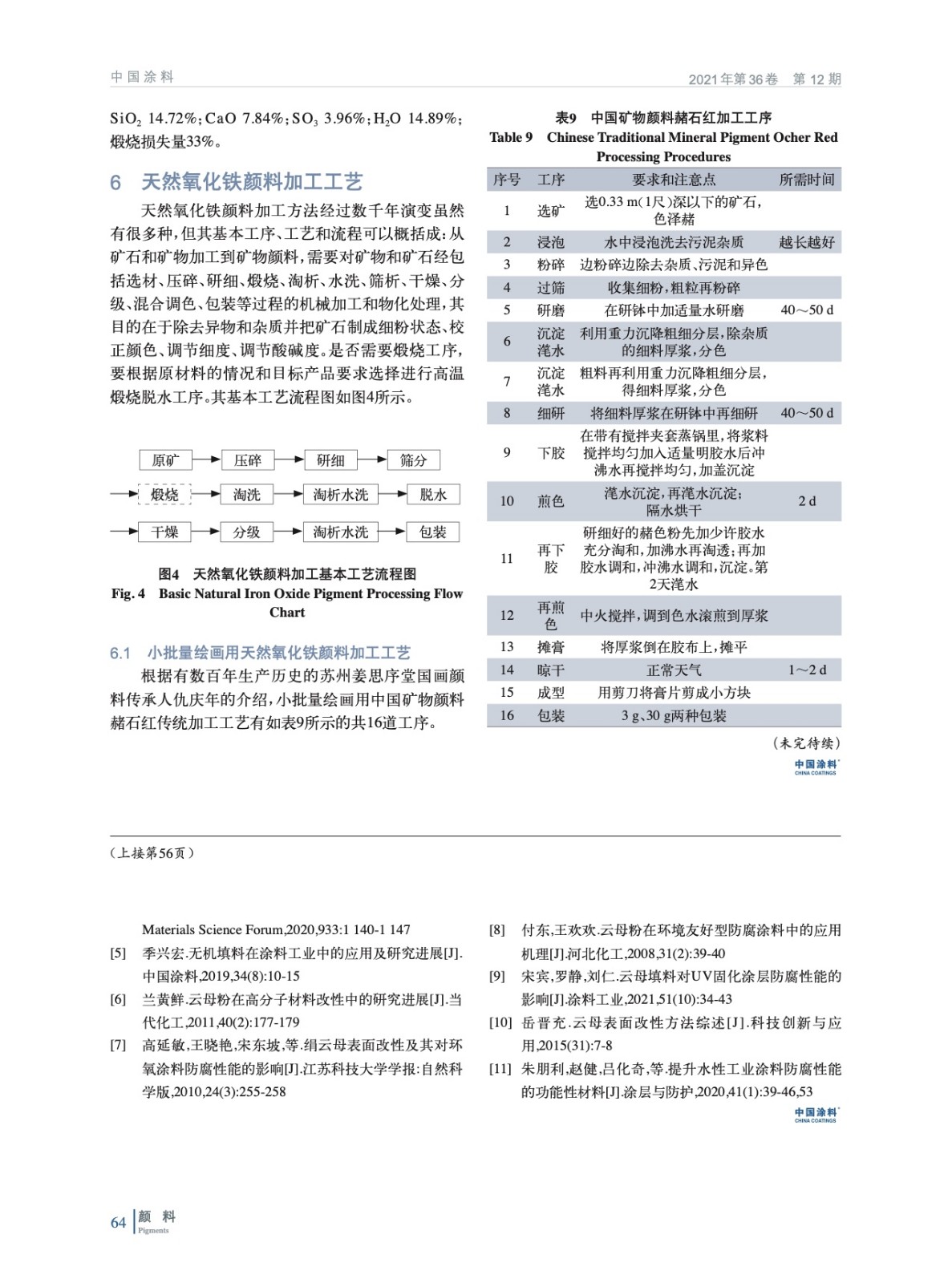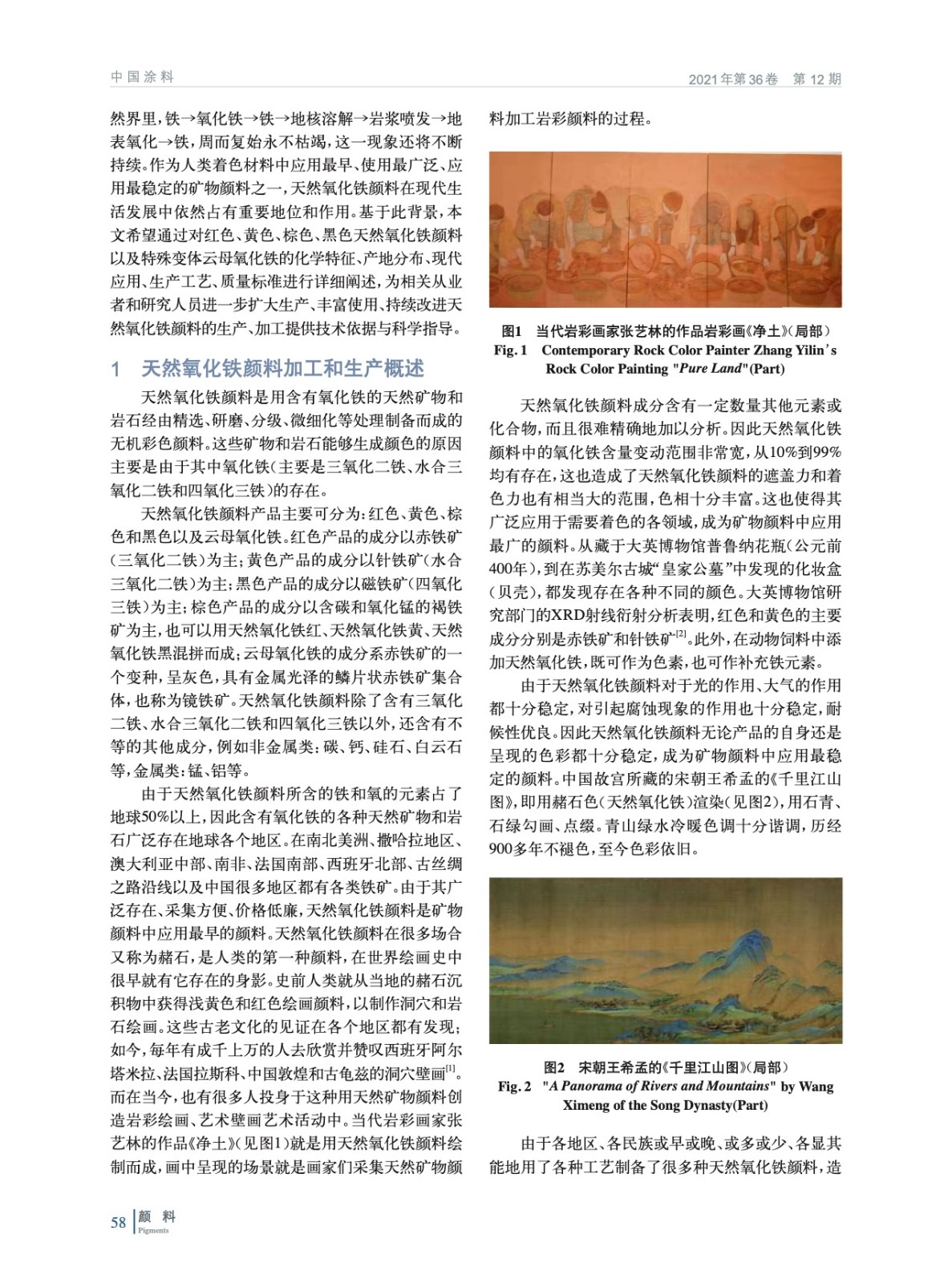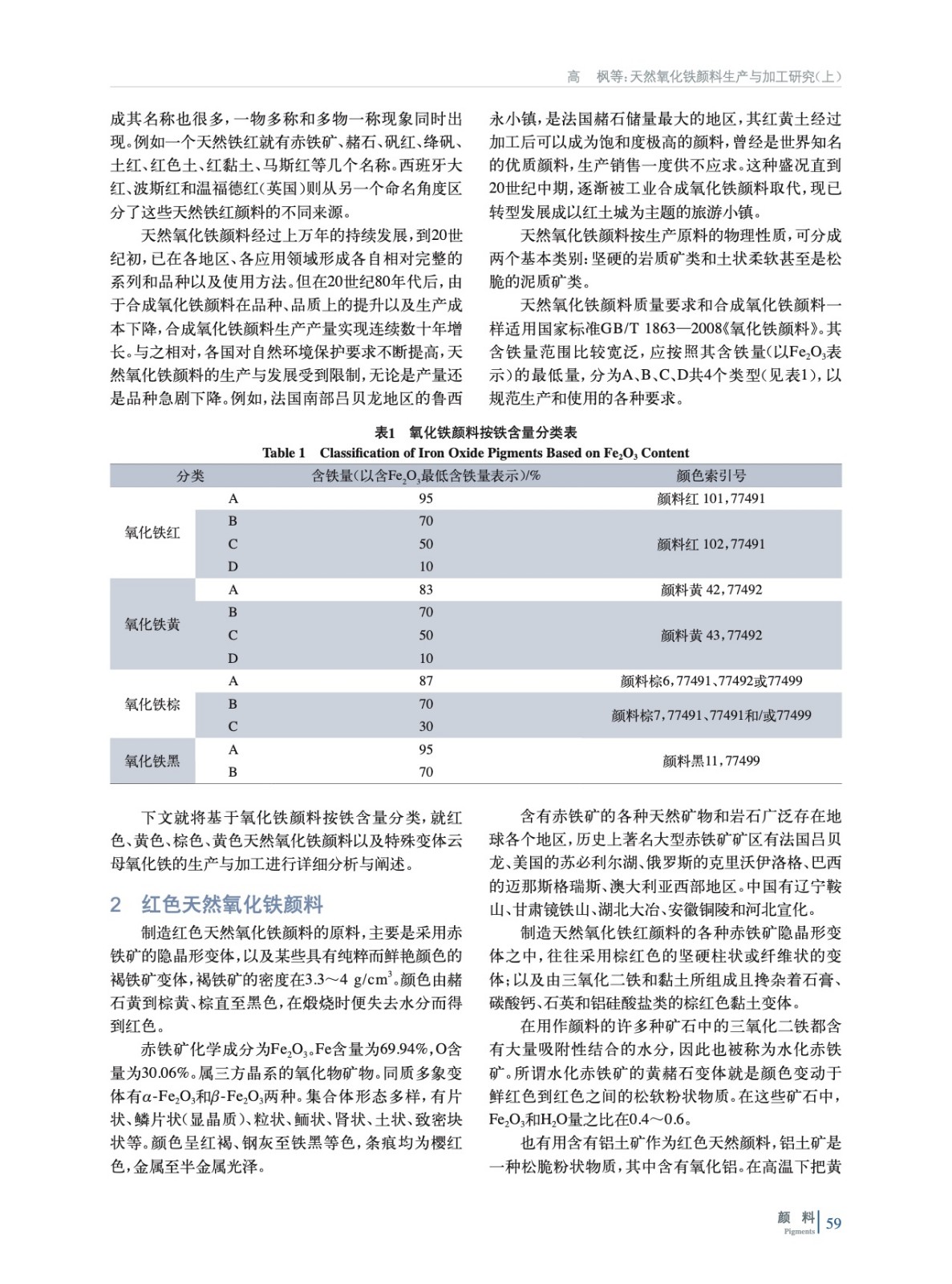 基于天然氧化鐵顏料發現的歷史,就紅色、黃色、棕色、黑色天然氧化鐵顏料以及特殊變體云母氧化鐵的化學特征、產地分布、現代應用進行詳細闡述,并分析比較各自生產工藝與質量標準,以期為相關從業者和研究人員在天然氧化鐵顏料的生產、加工以及使用提供技術依據與科學指導。