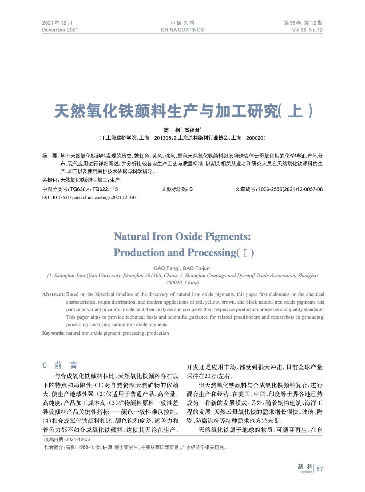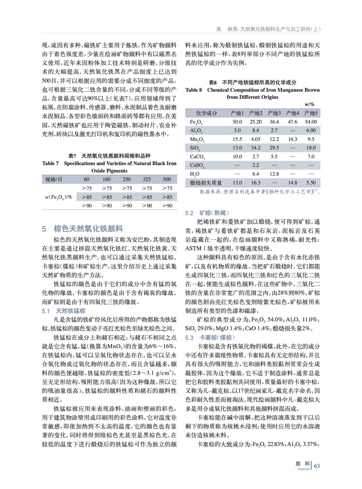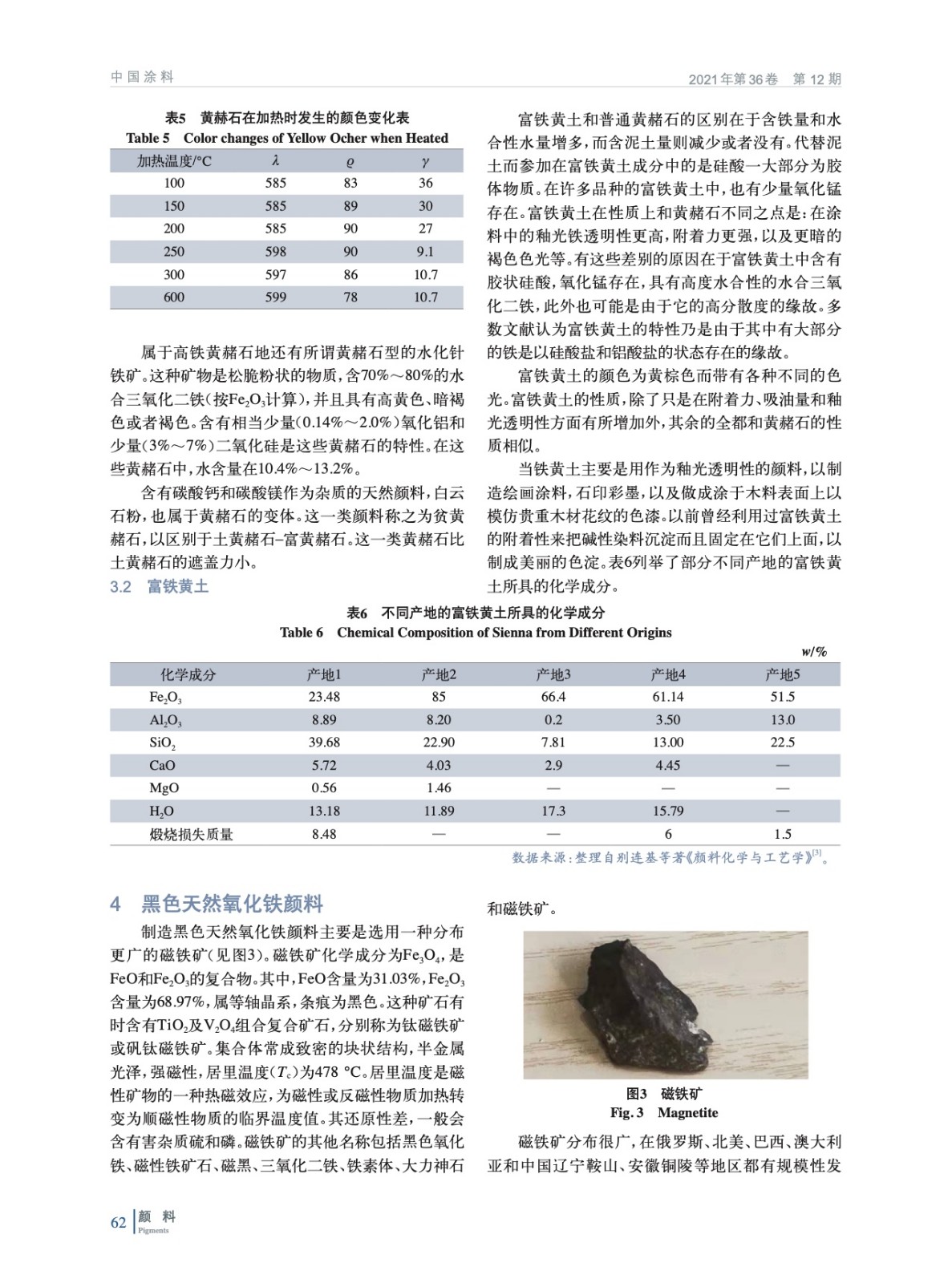 基于天然氧化鐵顏料發現的歷史,就紅色、黃色、棕色、黑色天然氧化鐵顏料以及特殊變體云母氧化鐵的化學特征、產地分布、現代應用進行詳細闡述,并分析比較各自生產工藝與質量標準,以期為相關從業者和研究人員在天然氧化鐵顏料的生產、加工以及使用提供技術依據與科學指導。