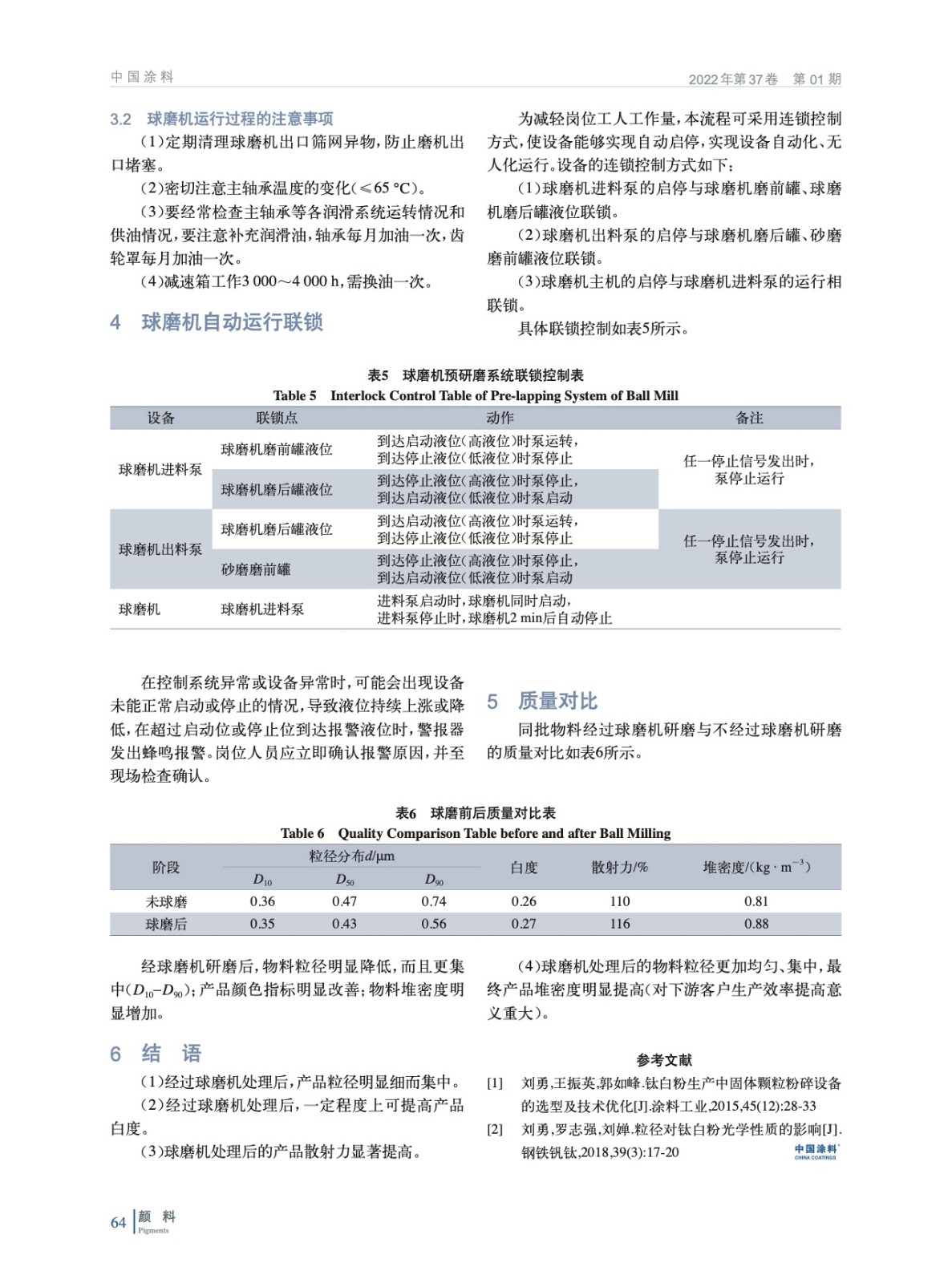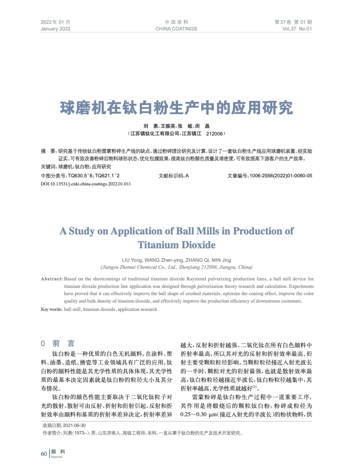 研究基于傳統鈦白粉雷蒙粉碎生產線的缺點,通過粉碎理論研究及計算,設計了一套鈦白粉生產線應用球磨機裝置,經實驗證實,可有效改善粉碎后物料球形狀態,優化包膜效果,提高鈦白粉顏色質量及堆密度,可有效提高下游客戶的生產效率。