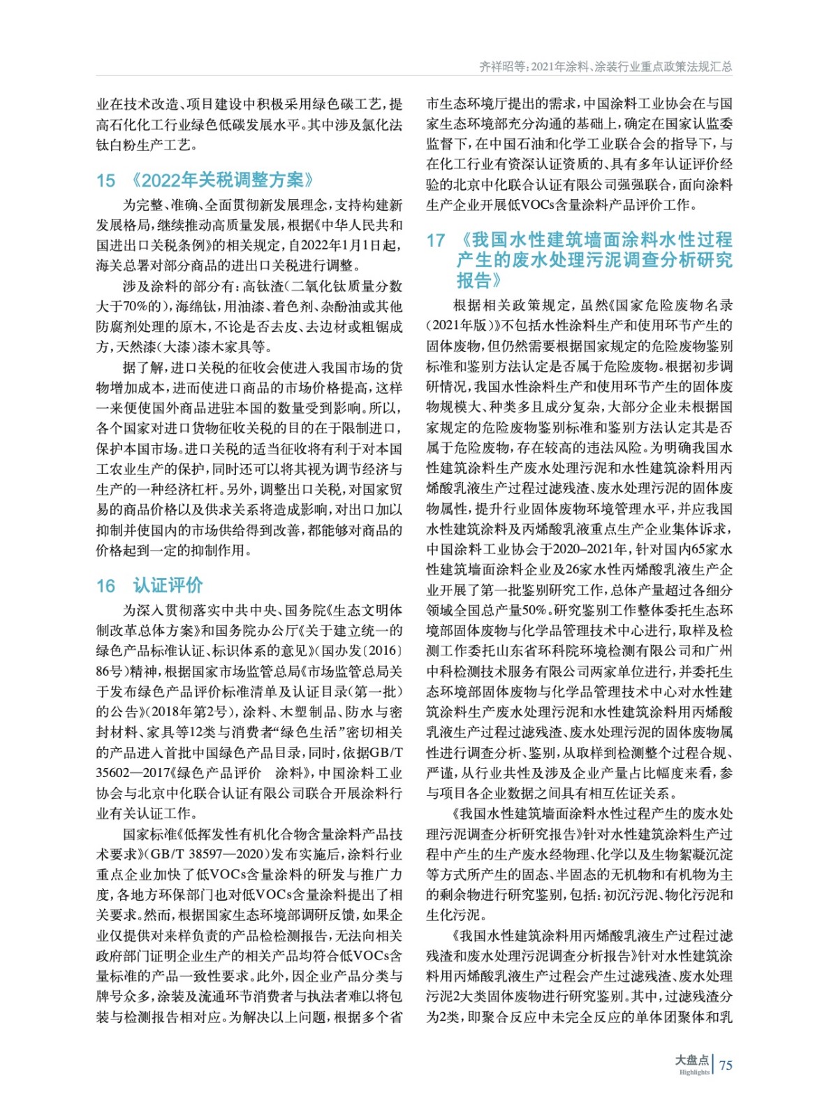 摘要:編者按:2021年國家出臺了多項政策法規(guī),特別是在涂料、涂裝領域,“十四五”規(guī)劃、《秋冬季大氣污染綜合治理攻堅行動方案》、《環(huán)境保護綜合名錄(2021年版)》、碳排放管理文件等重點政策法規(guī)將對行業(yè)未來高質量發(fā)展起到重要的作用。