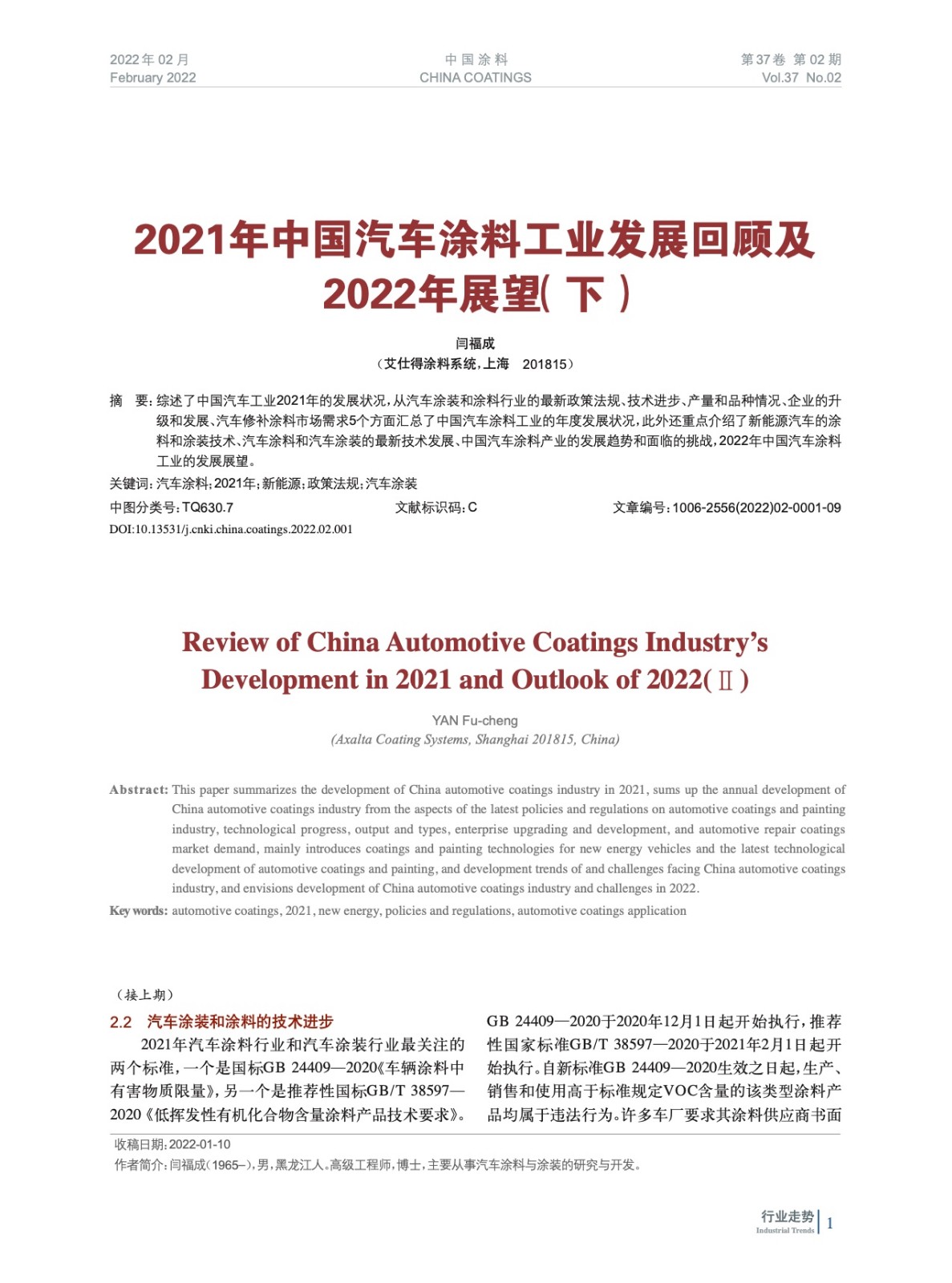 2021年中國汽車涂料工業發展回顧及2022年展望(下)