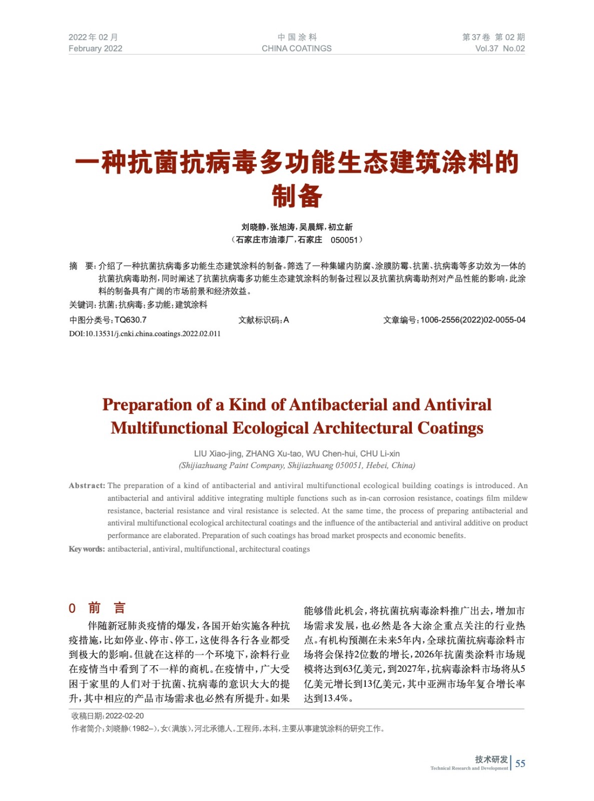本文系作者@劉曉靜,張旭濤,吳晨輝,初立新 授權(quán)中國涂料網(wǎng)發(fā)表,并經(jīng)中國涂料網(wǎng)編輯,未經(jīng)允許不得轉(zhuǎn)載,如需轉(zhuǎn)載請聯(lián)系chinacoatingnet@vip.163.com