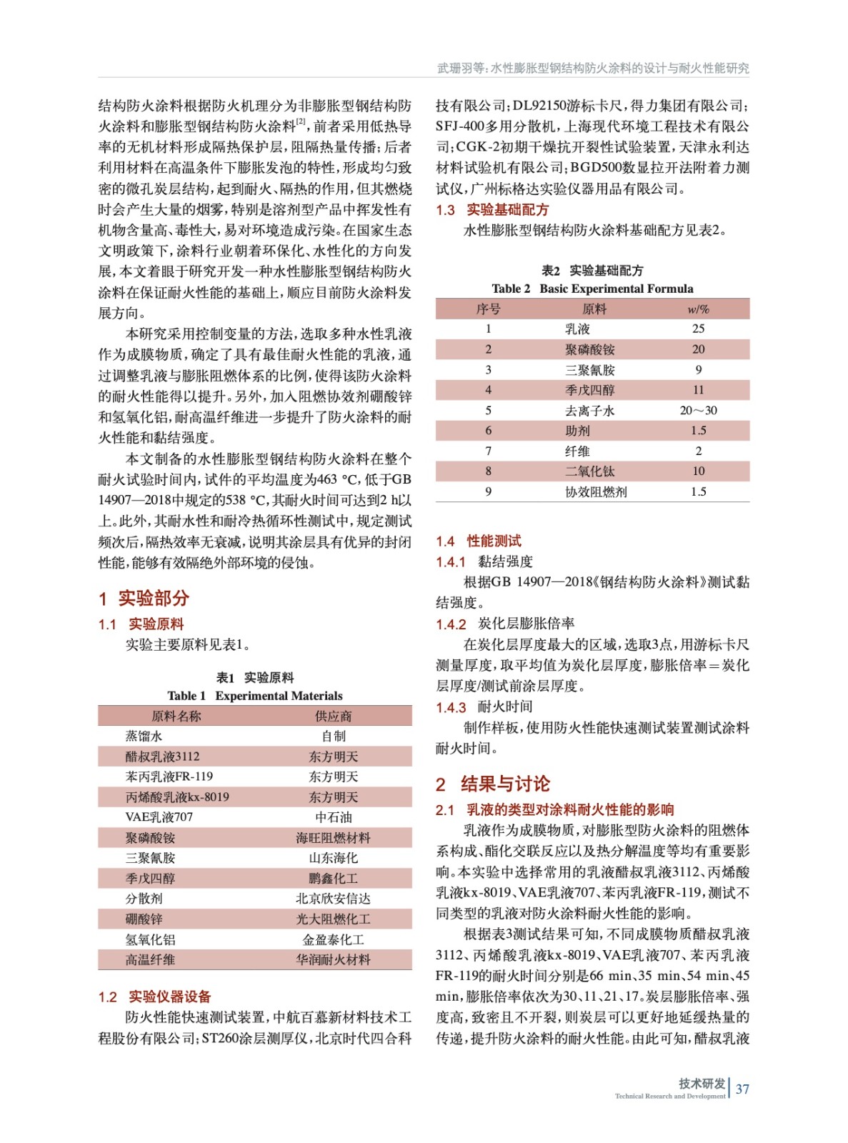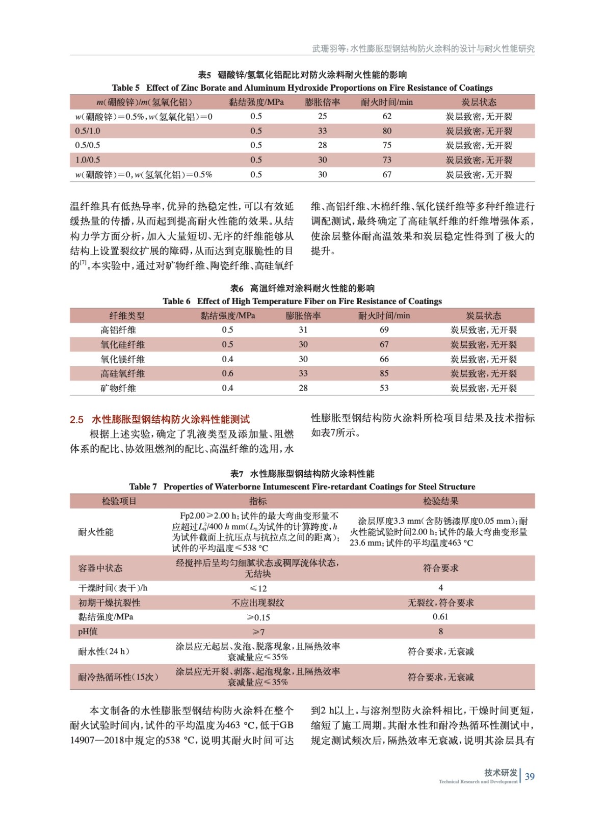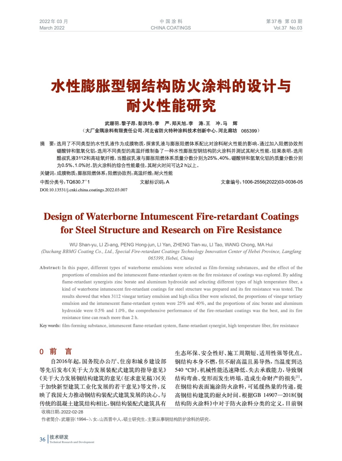 水性膨脹型鋼結構防火涂料的設計與耐火性能研究