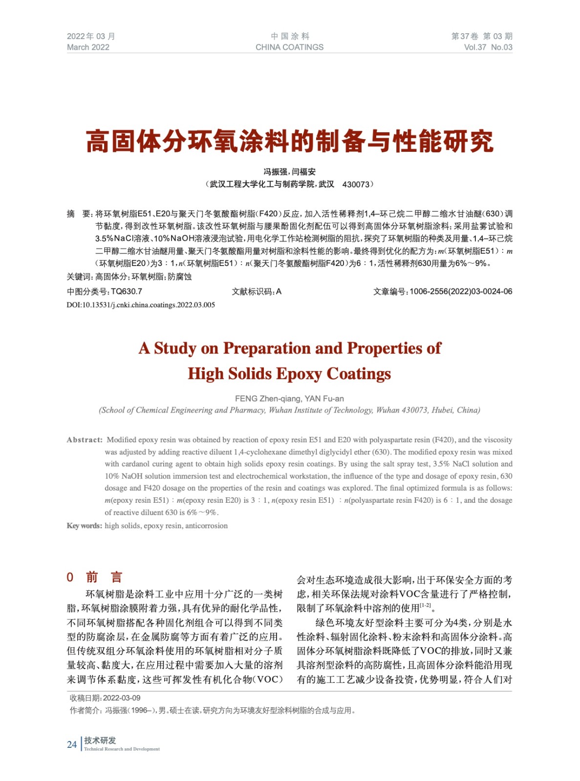 本文系作者@馮振強,閆福安 授權中國涂料網發表,并經中國涂料網編輯,未經允許不得轉載,如需轉載請聯系chinacoatingnet@vip.163.com