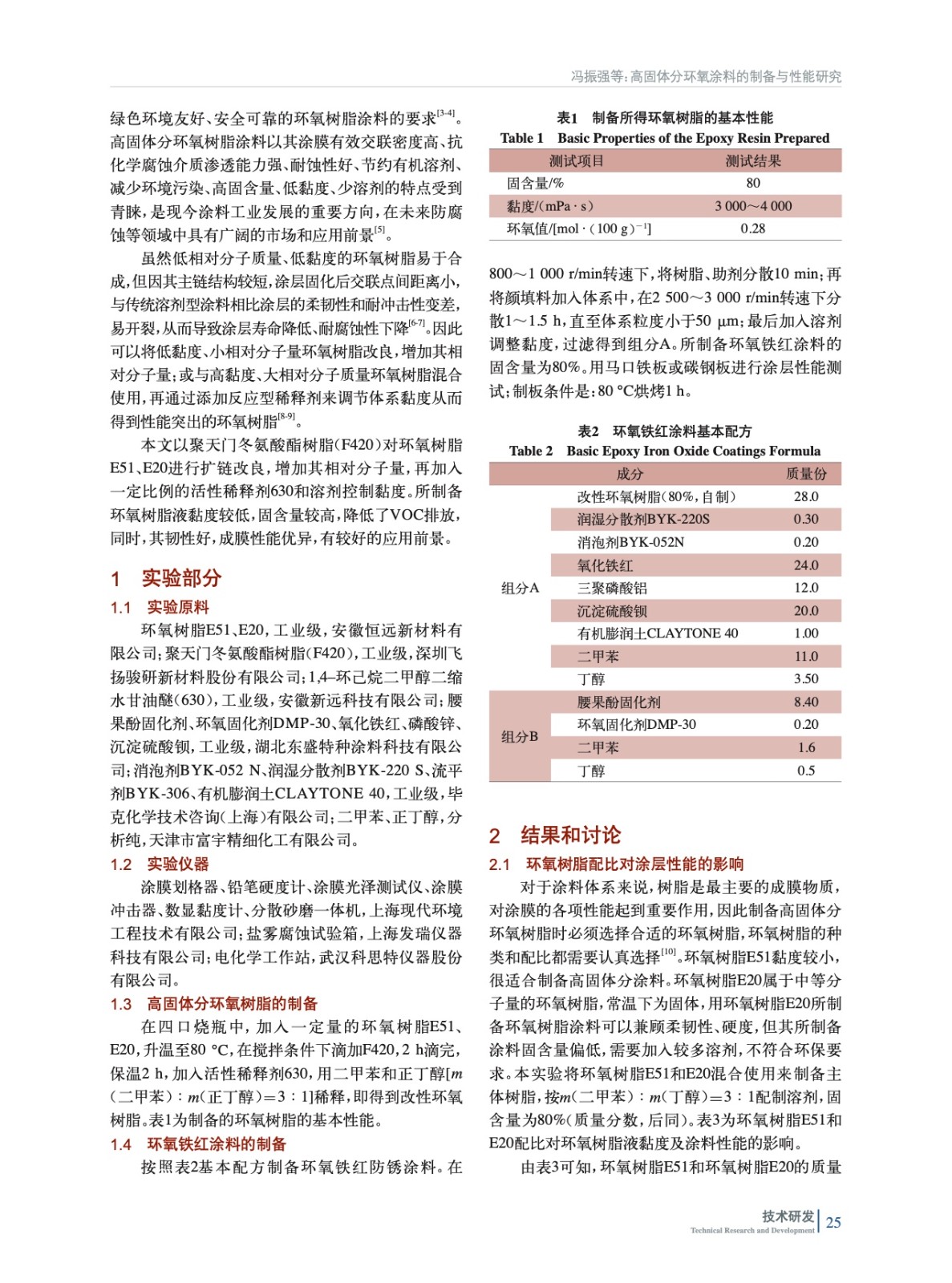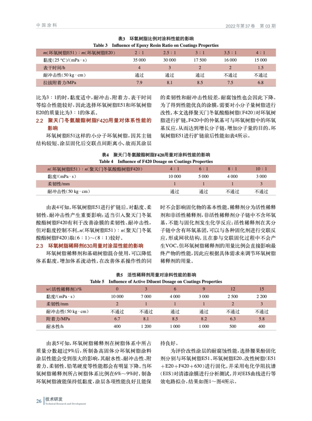 高固體分環氧涂料的制備與性能研究
