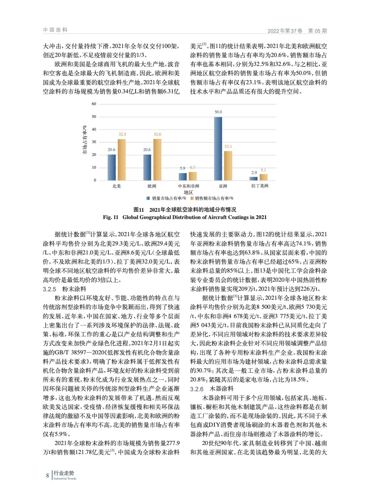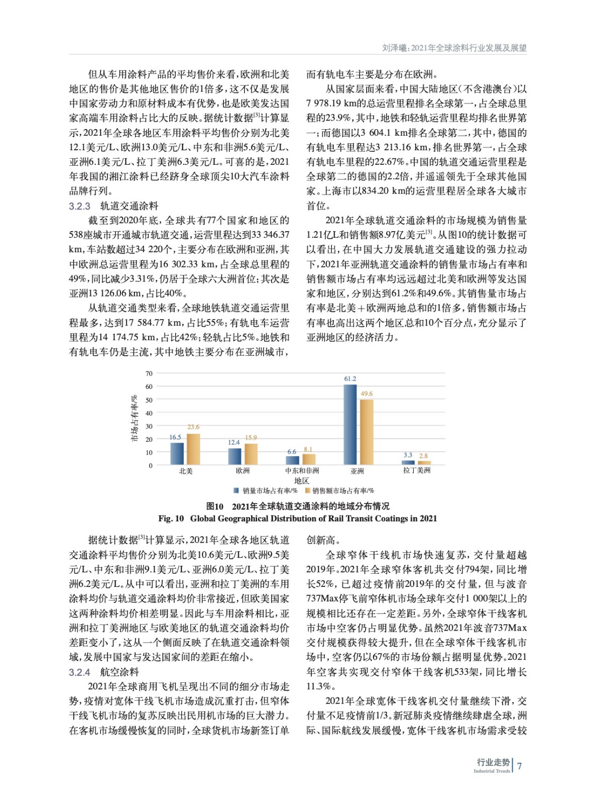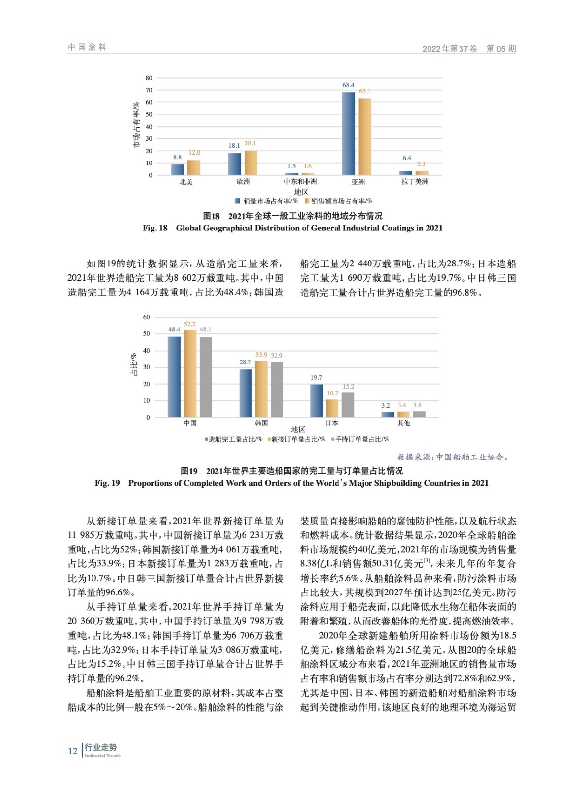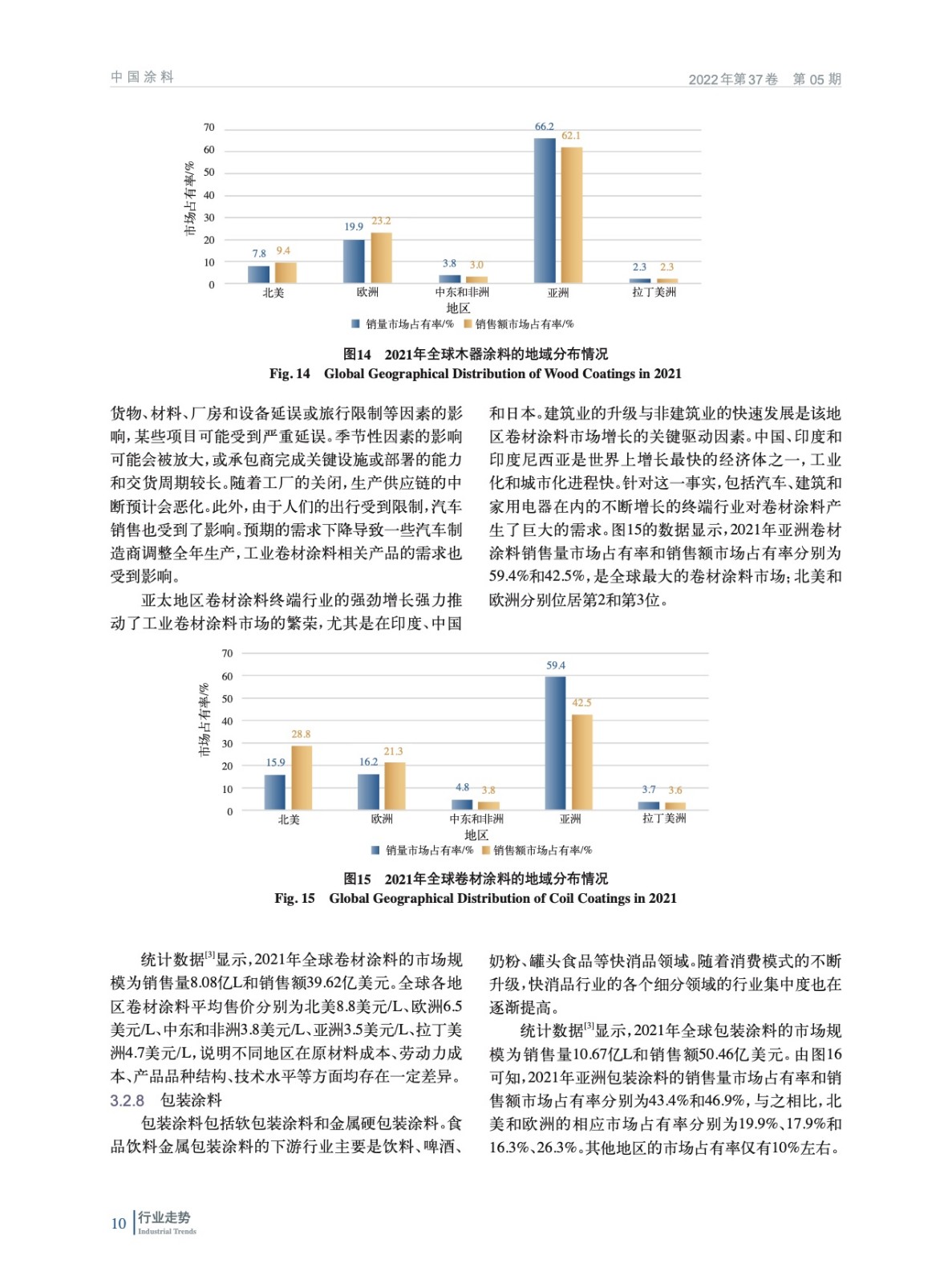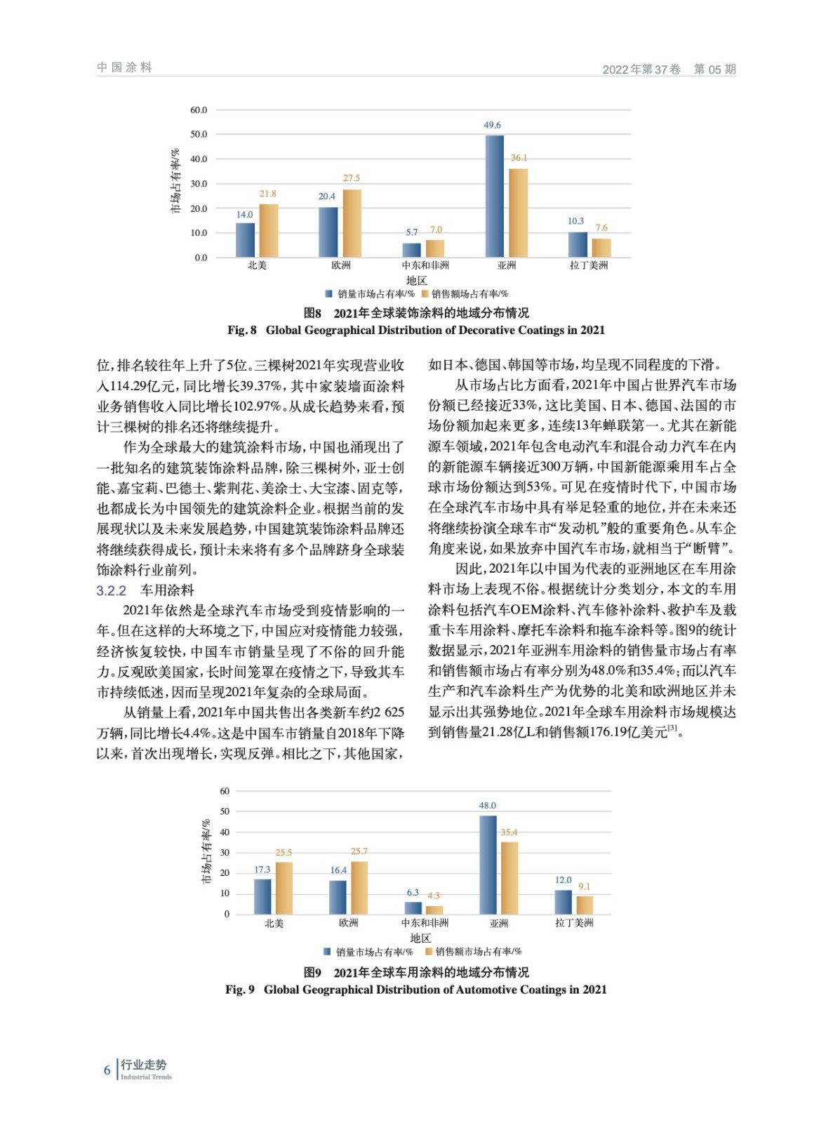 摘要:2021年在全球經(jīng)濟逐漸復蘇的大背景下,全球涂料行業(yè)呈現(xiàn)積極的增長態(tài)勢,亞洲成為全球涂料行業(yè)增長最快的地區(qū)。在粉末涂料、汽車涂料、軌道交通涂料、工業(yè)涂料等多個細分涂料領域,中國涂料行業(yè)的表現(xiàn)最為亮眼。詳細分析了2021年全球涂料市場規(guī)模、地域分布、細分市場,以及各地區(qū)細分市場的差異和發(fā)展的不均衡性,指出未來幾年亞洲仍然是全球涂料行業(yè)增長最快的地區(qū)。