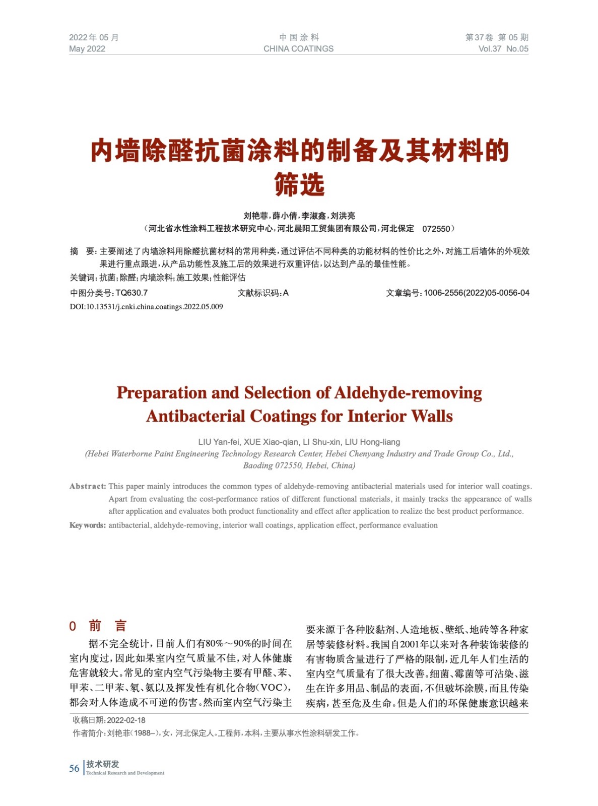 內墻除醛抗菌涂料的制備及其材料的篩選