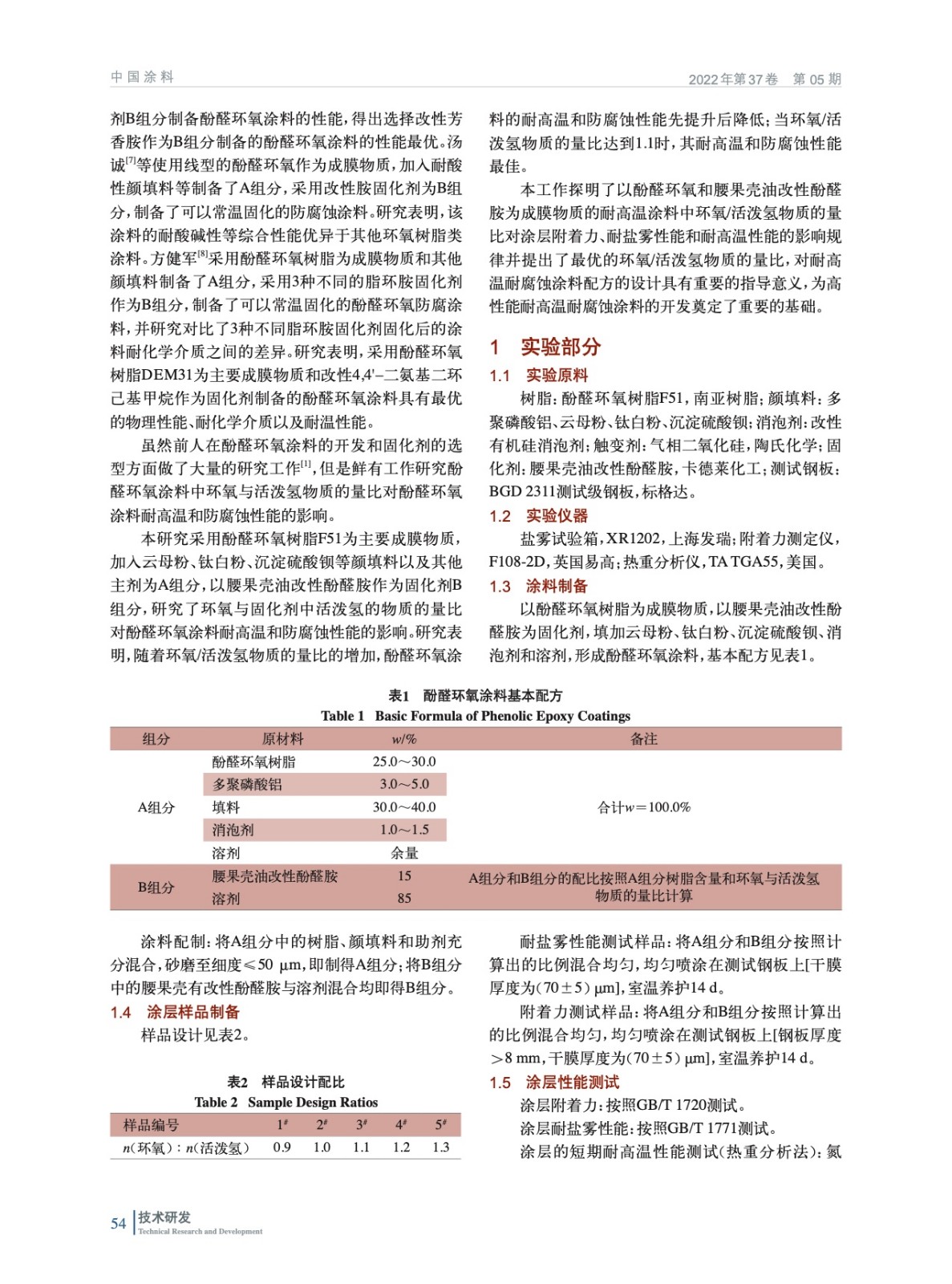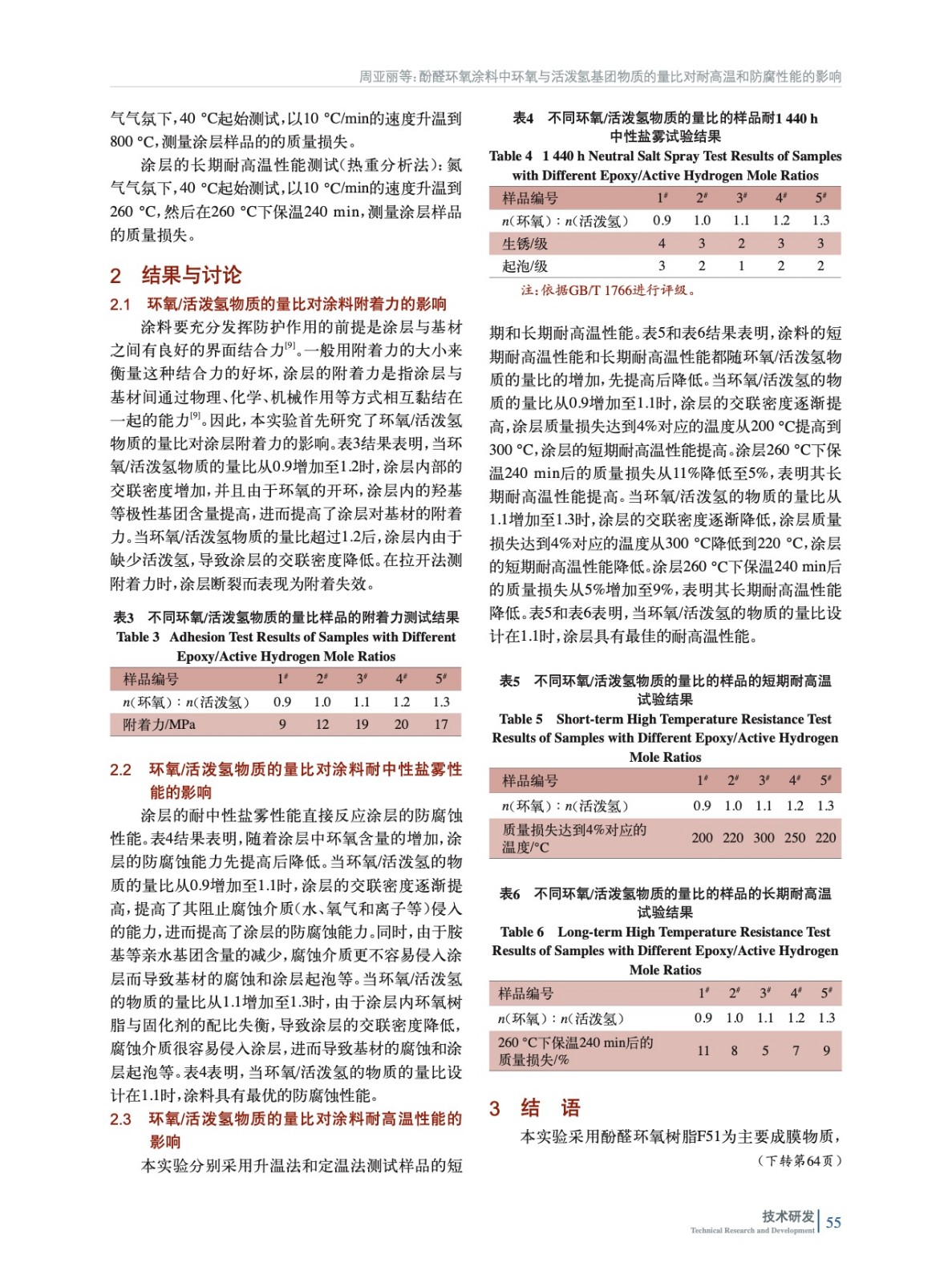 酚醛環氧涂料中環氧基團與活潑氫物質的量比對耐高溫和防腐性能的影響