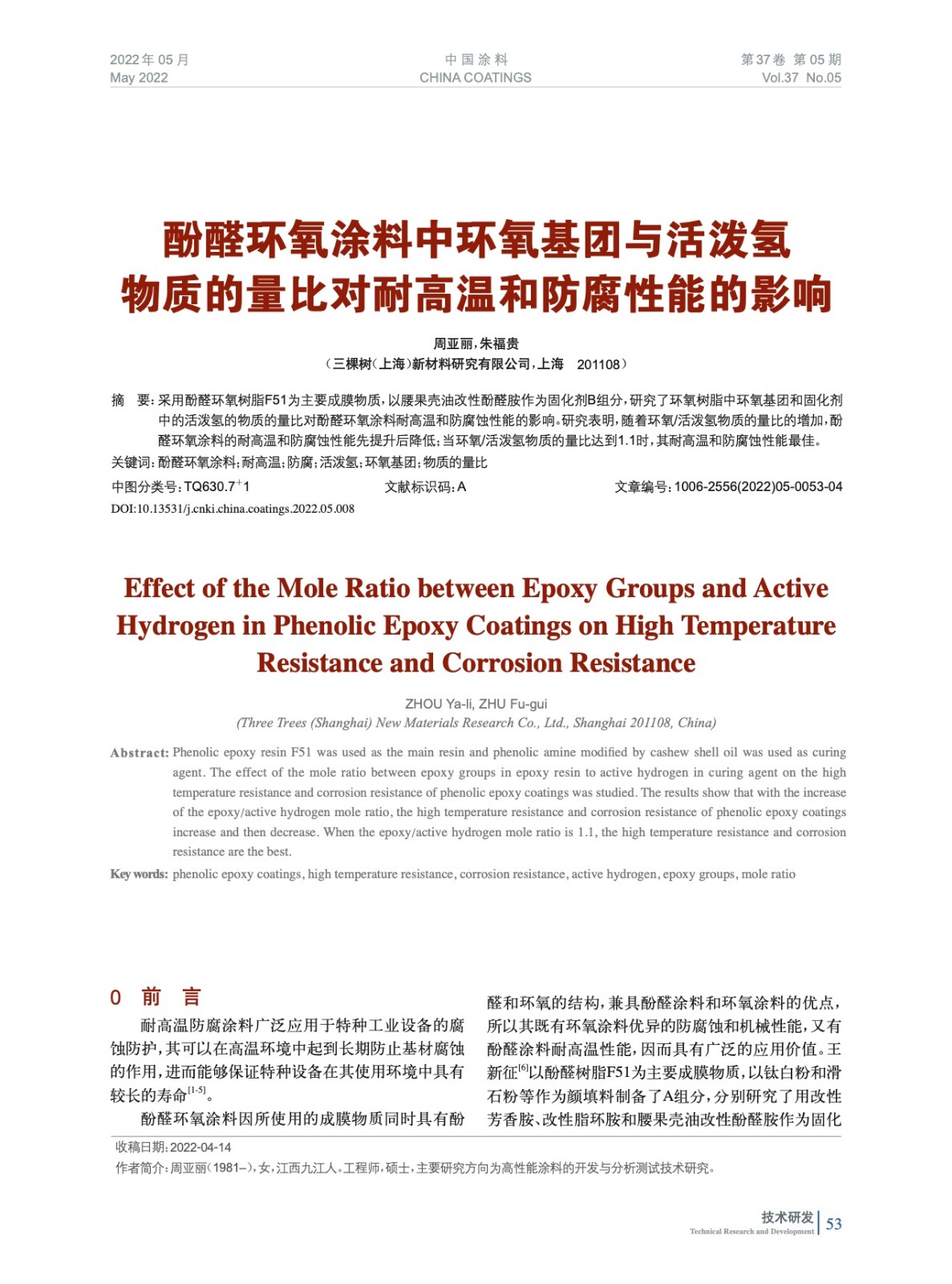 本文系作者@周亞麗,朱福貴 授權中國涂料網發表,并經中國涂料網編輯,未經允許不得轉載,如需轉載請聯系chinacoatingnet@vip.163.com