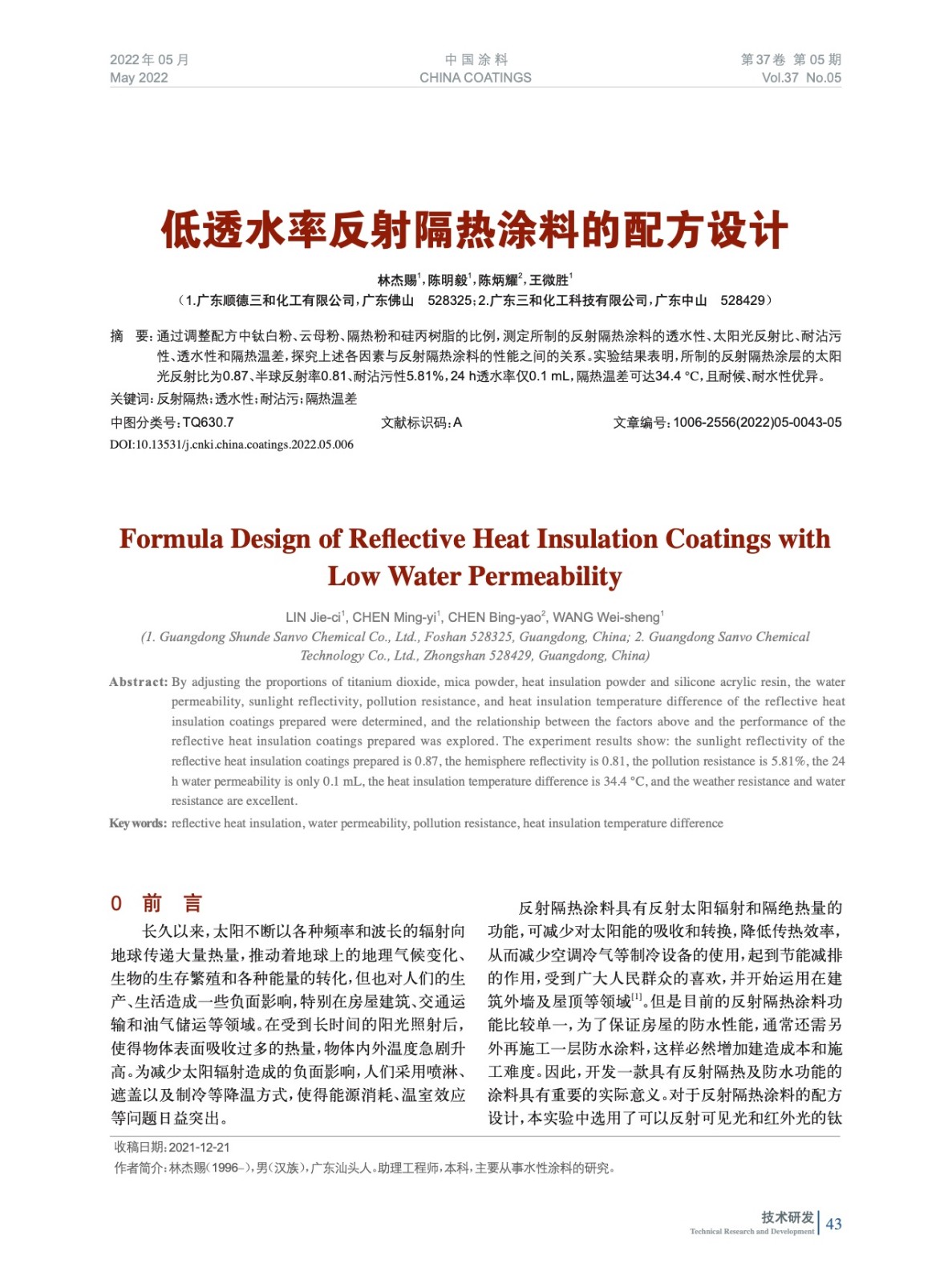 低透水率反射隔熱涂料的配方設(shè)計(jì)