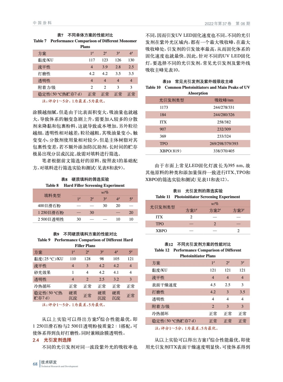 針對UV LED輥涂透明砂光底漆,從UV樹脂、活性稀釋劑、填料、光引發劑和胺類助引發劑選擇等方面進行探討,通過實驗論證以及輥涂設備應用測試,驗證了其在工業化應用上的可行性。