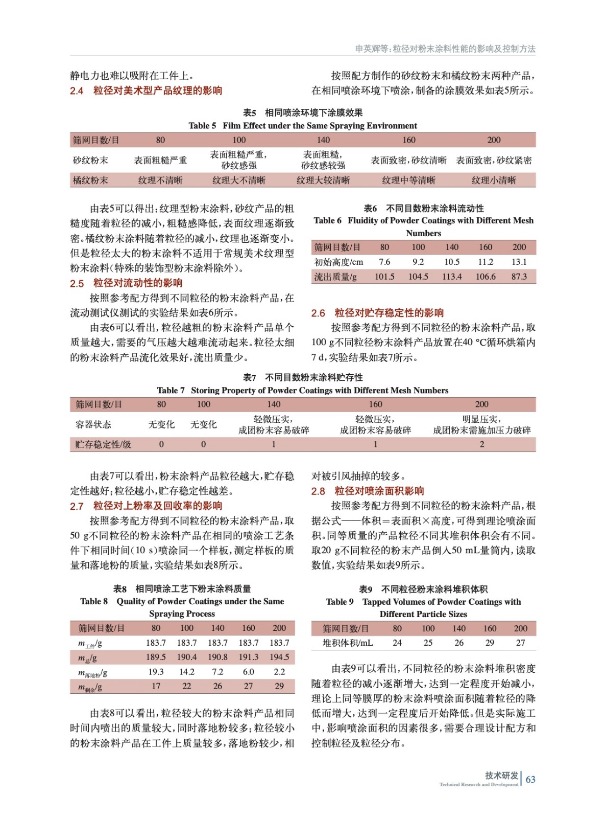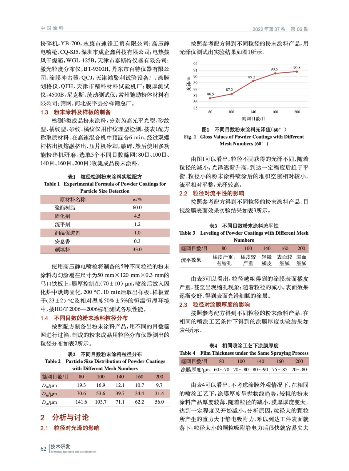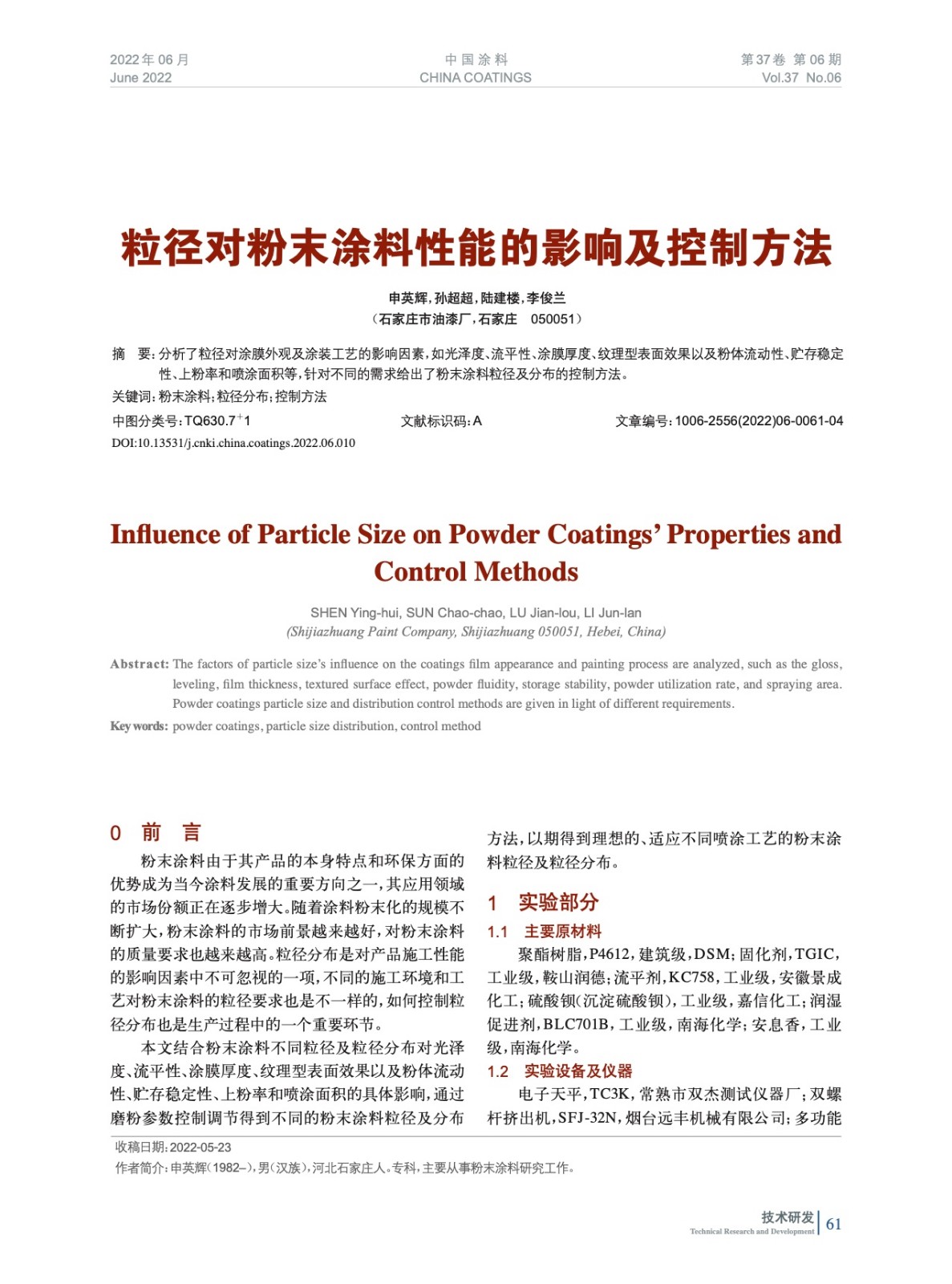 摘要:分析了粒徑對涂膜外觀及涂裝工藝的影響因素,如光澤度、流平性、涂膜厚度、紋理型表面效果以及粉體流動性、貯存穩(wěn)定性、上粉率和噴涂面積等,針對不同的需求給出了粉末涂料粒徑及分布的控制方法。