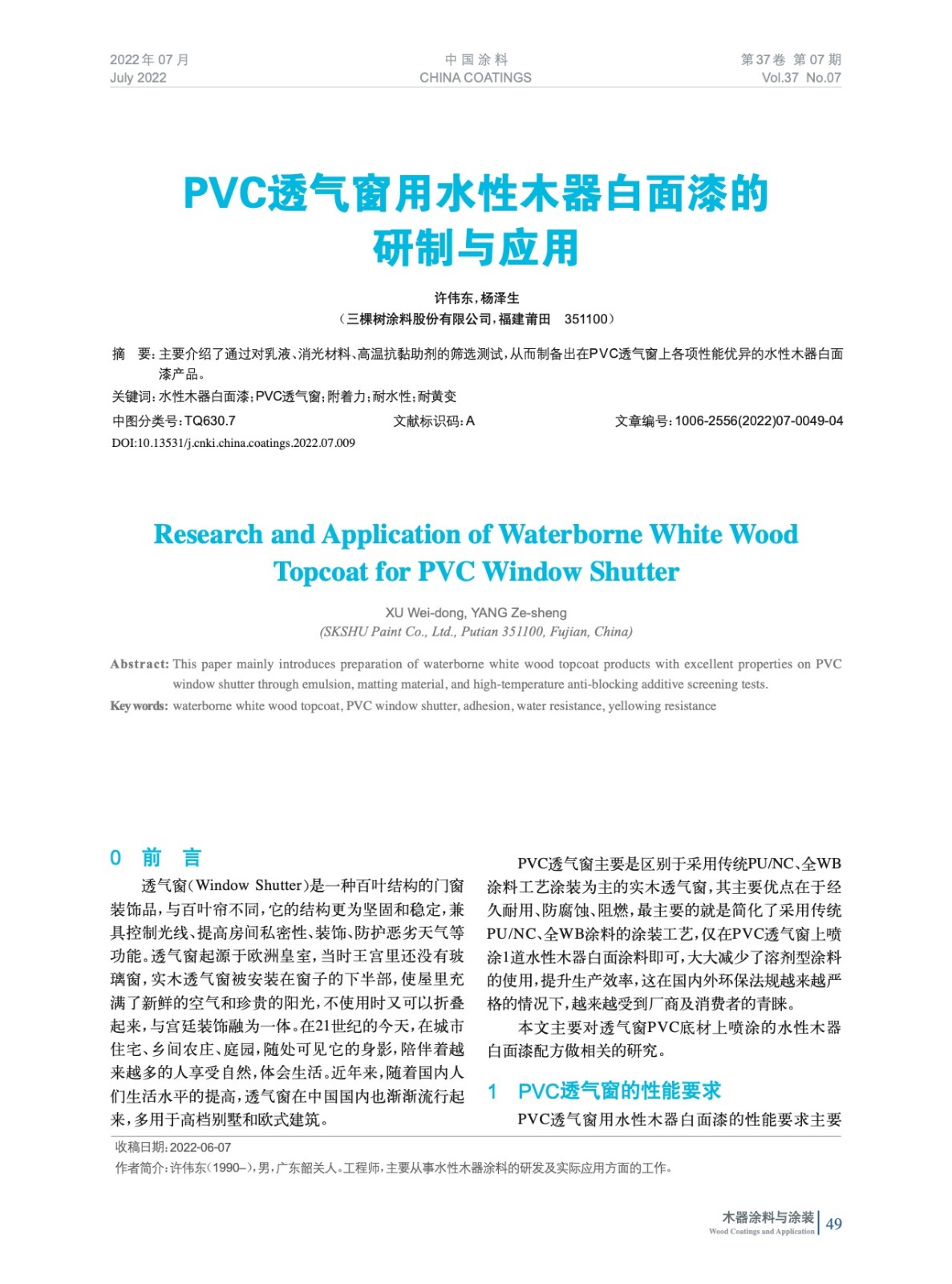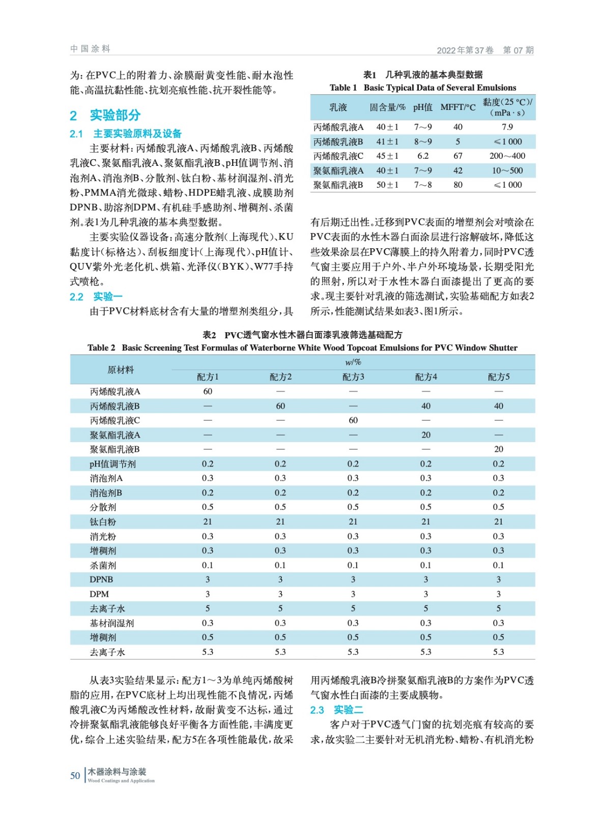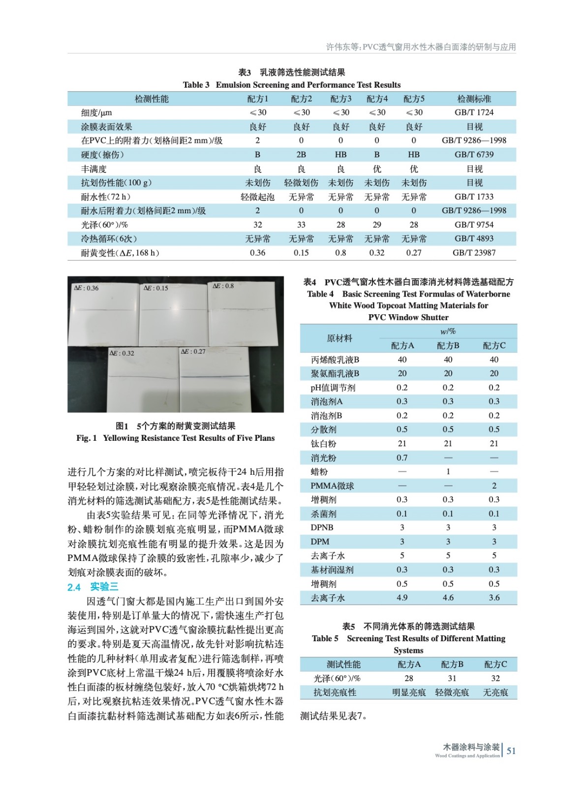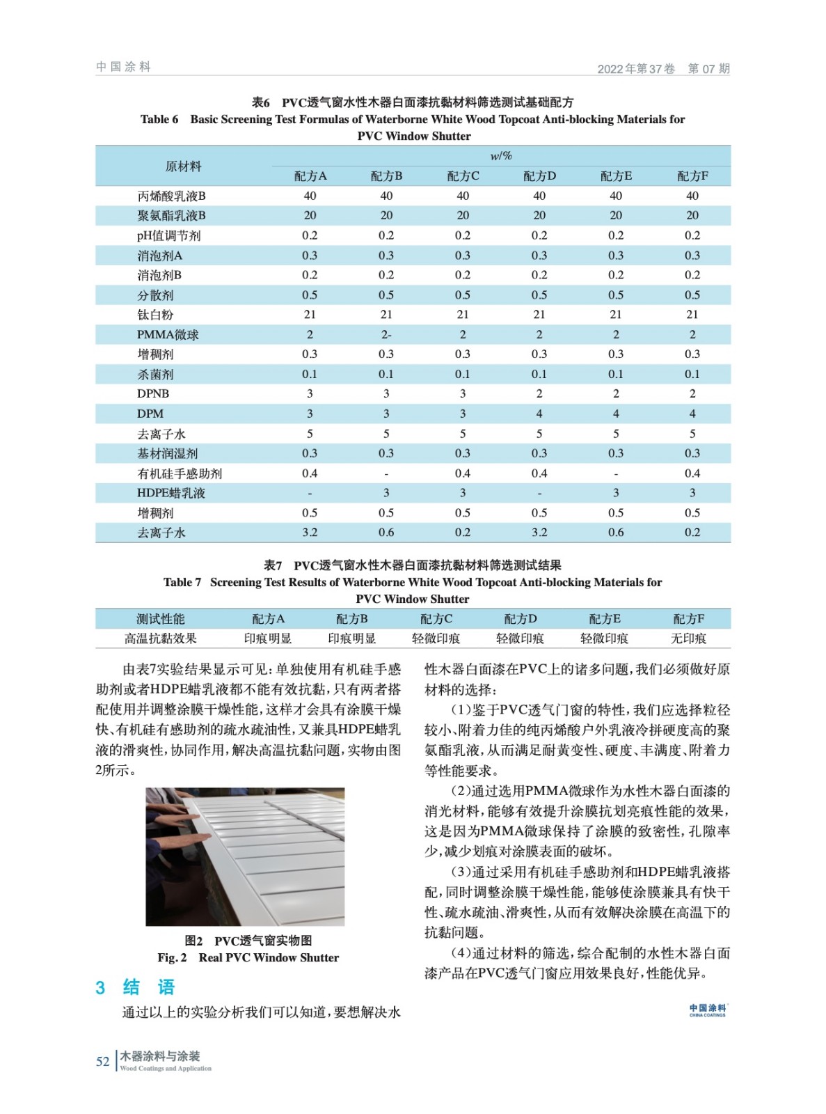 主要介紹了通過對乳液、消光材料、高溫抗黏助劑的篩選測試,從而制備出在PVC透氣窗上各項性能優異的水性木器白面漆產品。